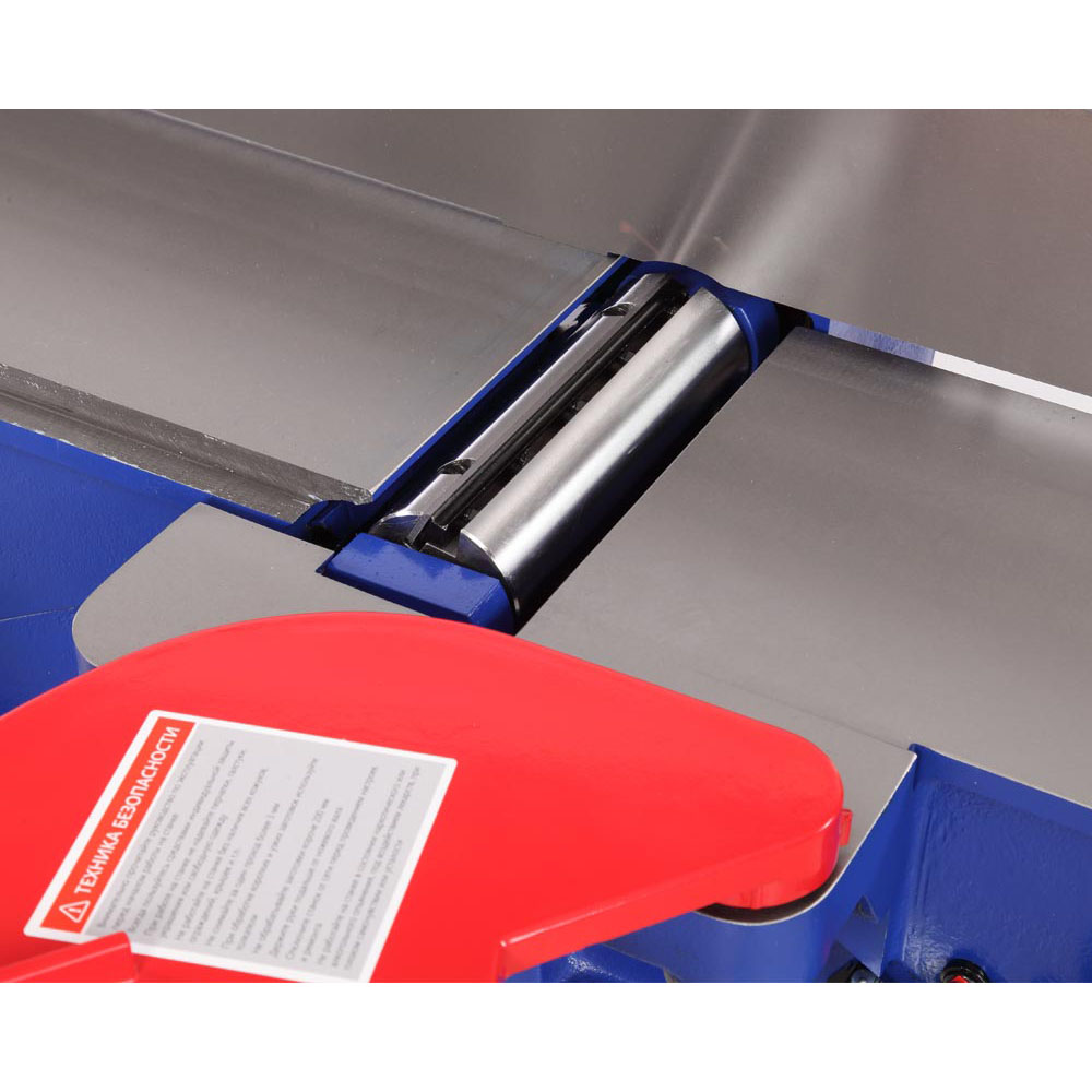 Станок предназначен для обработки древесины с целью придания ей необходимых размеров и форм. На станке можно выполнять фугование поверхностей. Имеет средние размеры, максимальная ширина обрабатываемой заготовки составляет 203 мм. Все основные детали отлиты из чугуна, рабочие поверхности фрезерованы. Глубина регулировки подающего стола до 13 мм. Длина загрузочного/ приемного столов - 897/897. Удлиненный стол нужен для обеспечения прямолинейности. Даже довольно габаритная заготовка, уложенная на него, будет иметь надежную опору, оператору остается только перемещать ее в горизонтальной плоскости и немного прижимать к поверхности стола. Имеет подкатное приспособление. Возможна замена ножевого вала на вал Helical или Spiral.