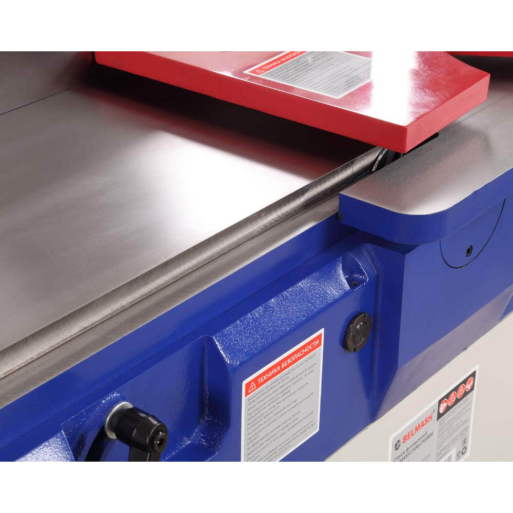 Один из самых крупных и мощных фуговальных станков, представленных на данный момент под брендом BELMASH. Максимальная ширина обработки 305 мм. Все рабочие поверхности изготовлены из чугуна. Длина загрузочного/ приемного столов составляет - 1036/1036 мм. Станок оснащен литым защитным кожухом ножевого вала, также в комплекте имеются специальные упоры для подачи заготовки. Возможна замена ножевого вала на вал Helical.