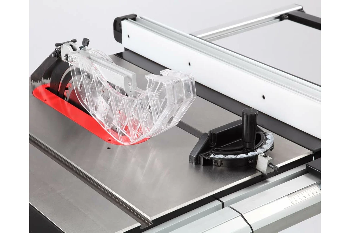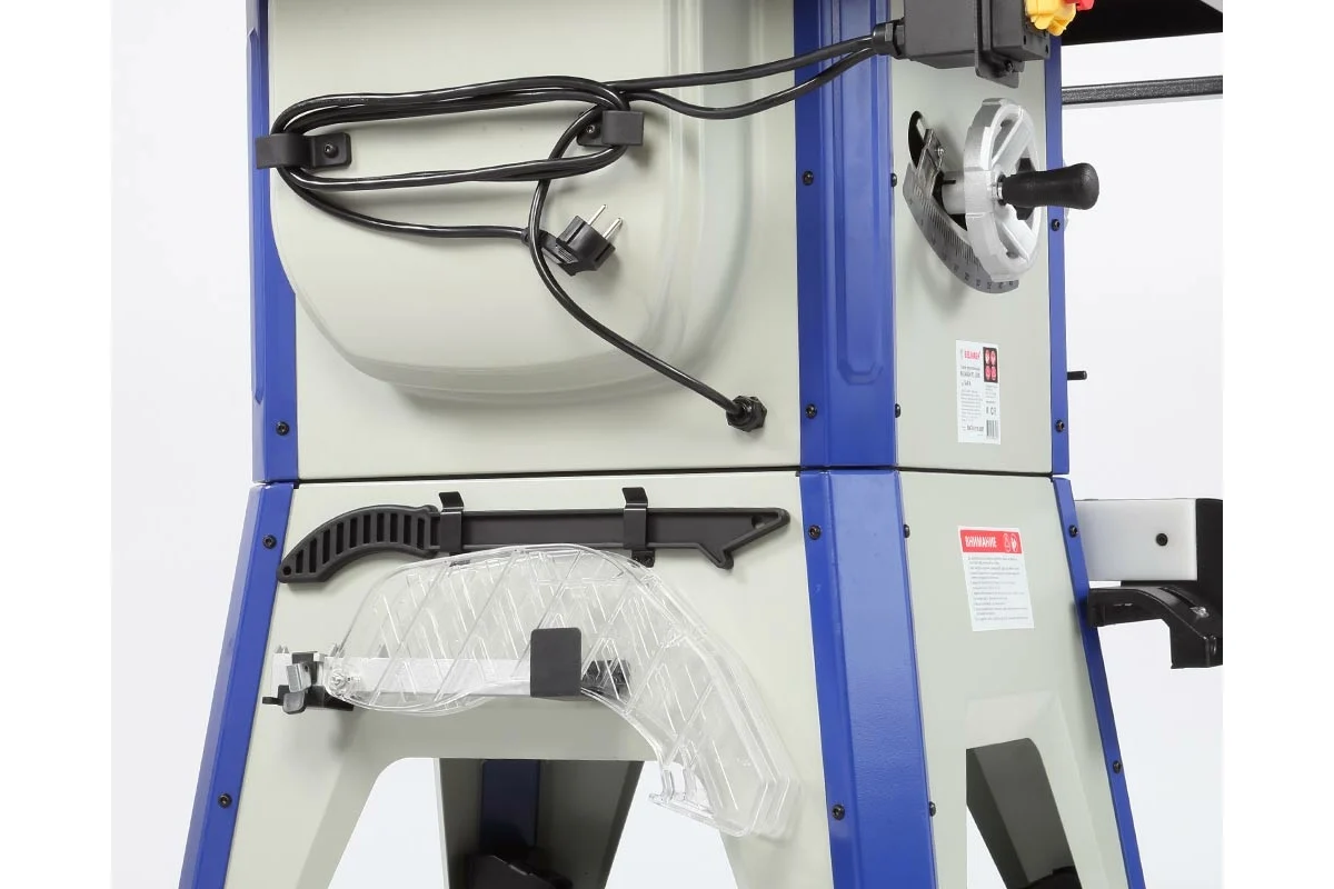 Для работы используются диски диаметром 254 мм с посадочным отверстием 30 мм. Расклинивающий нож защищает от обратной отдачи при заклинивании диска. Шкала на направляющей параллельного упора позволяет точно распилить заготовку. Держатели на корпусе для дополнительных принадлежностей делают работу комфортной. Станок оснащен патрубком 100 мм для подключения к вытяжке.