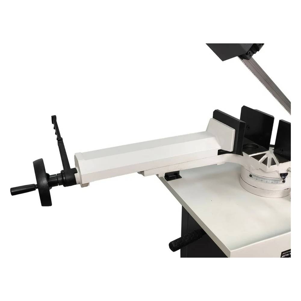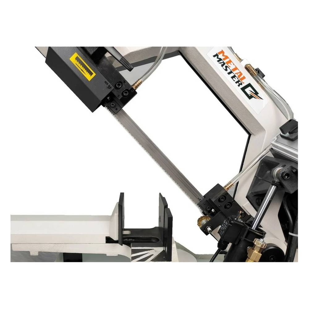 Направляющие обеспечивают высокую точность обработки, регулируя позиционирование пилы относительно заготовки. Натяжение полотна регулируют вручную. Две скорости позволяют нарезать металлопрокат, пластмассу, тонкостенные металлические профили.