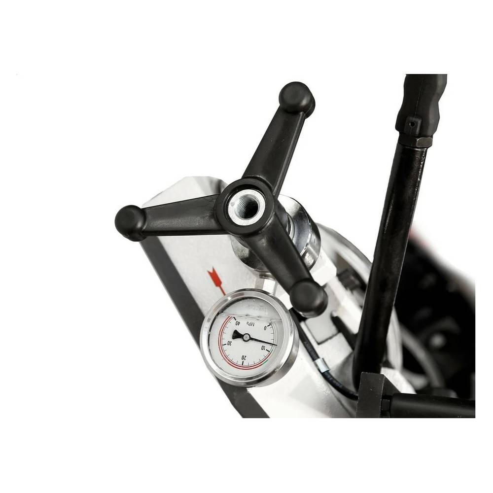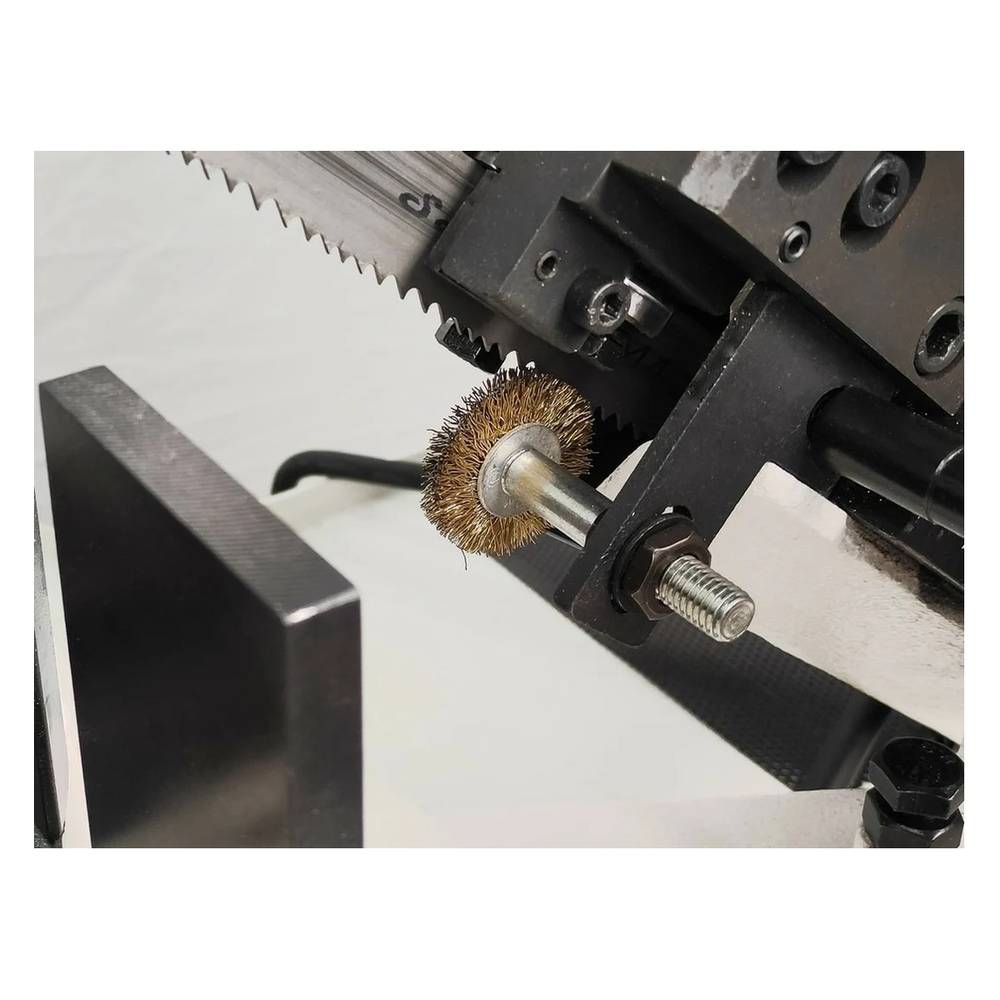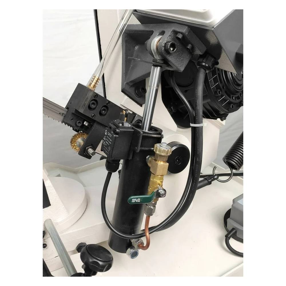 Механизм гидроразгрузки уменьшает нагрузку на оператора при опускании пильной рамы. Компенсирующая пружина облегчает подъем. Тиски приводятся в движение специальным маховиком и отвечают за надежную фиксацию заготовок.