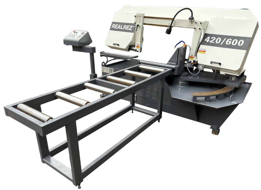 По окончании реза рама станка поднимается на заданную высоту. Гидравлический привод тисков надежно зафиксирует заготовку. Станок ленточнопильный REALREZ 420/600 предназначен для распиловки сплошных заготовок и профилей из металла. Массивная конструкция станка позволяет производить распиловку тяжелых сплошных материалов без вибраций. Инвертор позволяет оптимально настроить скорость движения ленточного полотна в соответствии с заготовкой. Поворотная рама станка обеспечивает угловую резку до 60 градусов. Панель управления обеспечивает удобное управление станком.