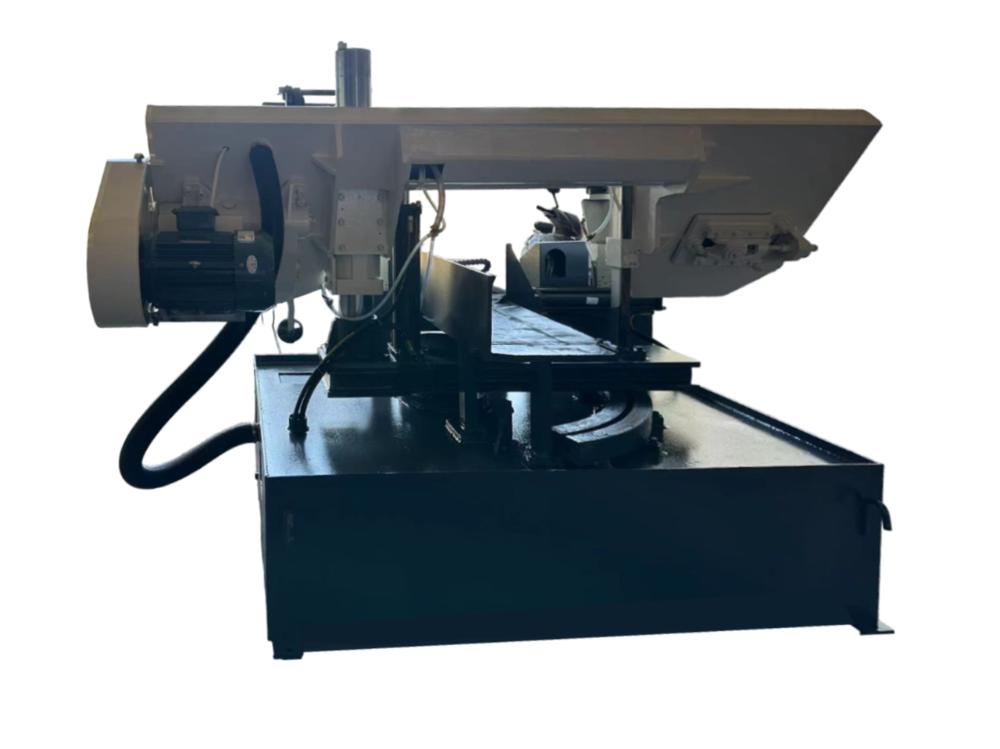 Ленточнопильный станок колонного типа REALREZ GB4235X (0°-45°) отличное решение для резки больших заготовк под углом. Станок за счет поворота рамы способен обрабатывать заготовки под углом до 45 градусов. GB4235X станок колонного типа, что позволяет делать рез ровным. Массивная конструкция позволяет на этом станке обрабатывать как круглые заготовки большого диаметра так и заготовки для металлоконструкций. Возможность угловой резки а также колонная конструкция станка позволяет делать ровный рез двутавровых заготовок ровно и точно. GB4235X это полуавтоматический станок. Это означает, что станок оборудован гидравлической станцией, а все операции такие как зажим заготовки в тисках и подъем опускание рамы осуществляются при помощи пульта оператора.