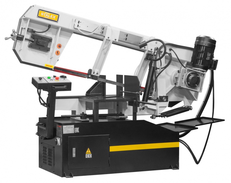 Stalex BS-2114Т с гидроразгрузкой, оборудован дросселируемым гидравлическим цилиндром, обеспечивающим скорость опускания пильной рамы в зависимости от профиля заготовки, с оптимальными режимами распила, подъём рамы осуществляется оператором вручную.