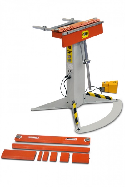 Основным принципом электромагнитного листогибочного станка является использование электромагнитной системы зажимов вместо механической. В конструкцию станка входит длинный электромагнит со стальной прижимной балкой, установленной над ним. За счет электромагнитного воздействия лист металла зажимается между балками с усилием от 3 до 10 тонн. Гибка заготовки осуществляется поворотом гибочной перекладины. Лист металла сгибается вокруг переднего края зажимной балки. В зависимости от длины станка – различна комплектация зажимных перекладин, обеспечивающих широкое применение станка для различных задач. В комплектации возможны 4 вида перекладин – сплошная, сегментная, узкая, прорезная перекладины.