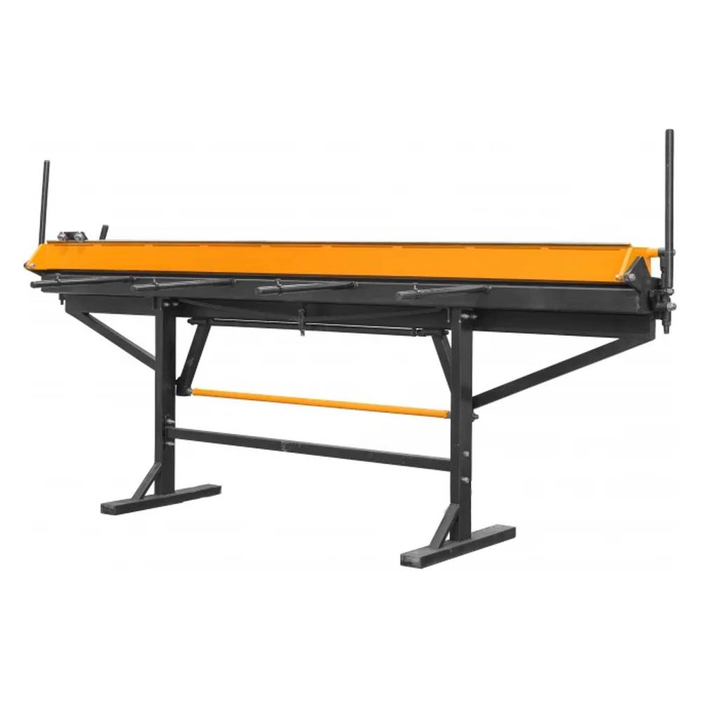 Универсальный листогиб STALEX LBM без ограничения подачи листа, предназначен для работы в цеху и на строй площадке - выполняет резку, гибку и формовку листовых металлов для производства профилей, доборных элементов кровли, наружной и внутренней отделки зданий и других профильных металлоизделий. Отсутствие ограничений по глубине обрабатываемого металла дает возможность изготавливать большой ассортимент изделий из листового материала толщиной до 0,7 мм по оцинкованной стали.