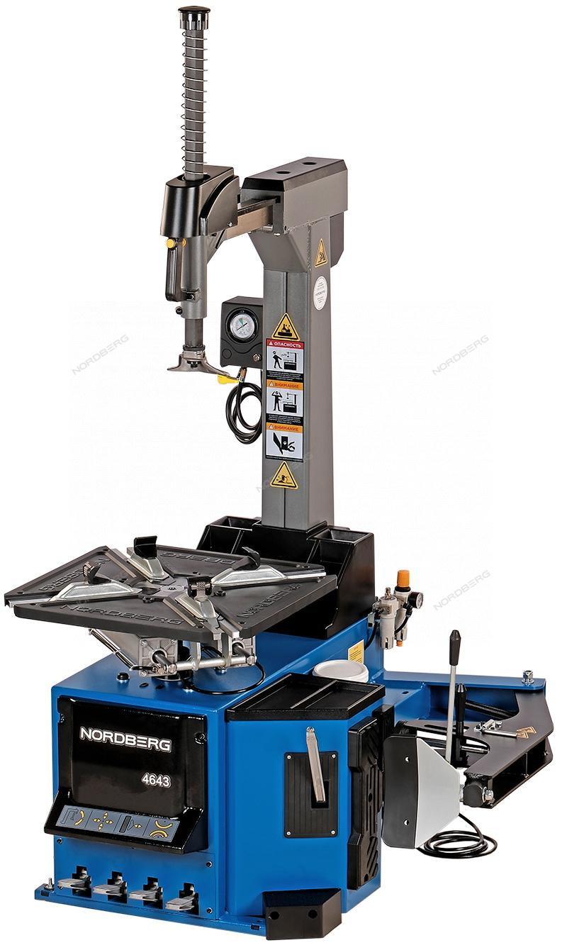 Станок шиномонтажный 380V автомат, 2х скор, стол с накладками, синий NORDBERG 4643(B) Для мастерских с высоким объемом выполняемых работ