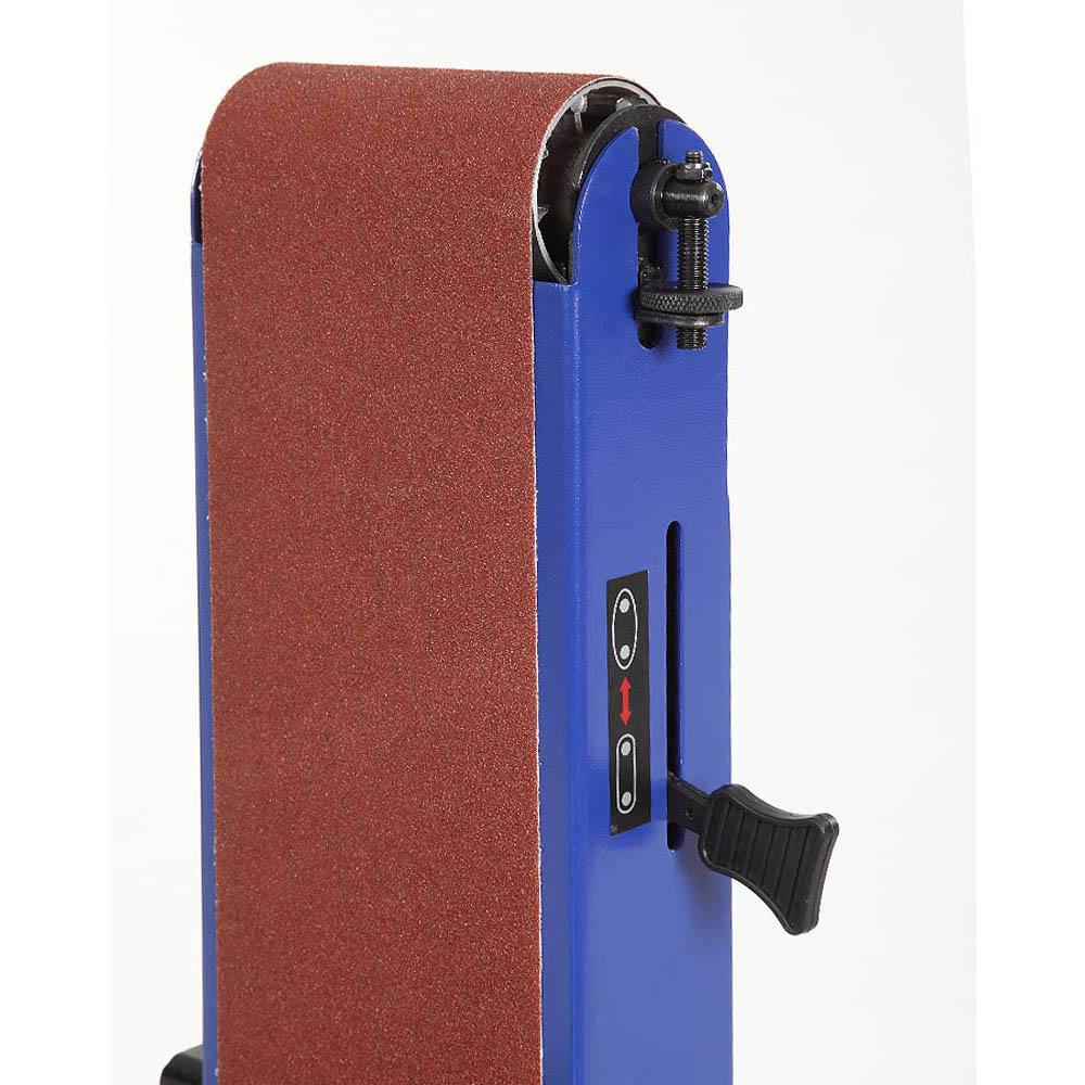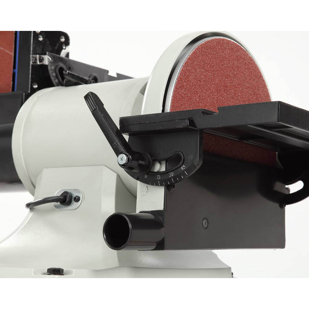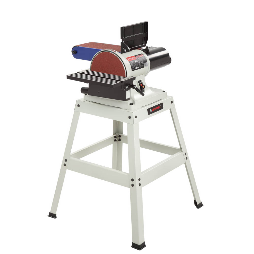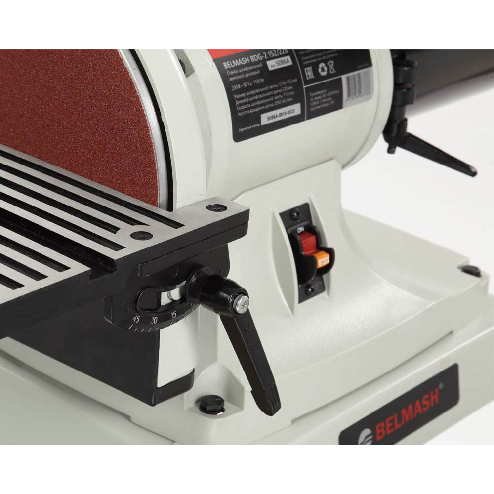 Самая мощная модель в линейке шлифовальных станков BELMASH. Корпус станка литой, алюминиевый. Рабочих столов два – отдельно для шлифования лентой и диском, это удобно, т. к. при переходе между операциями стол переустанавливать не требуется. Выполнены они из алюминия, имеют паз под установку углового упора. Угол наклона стола при ленточном шлифовании – от 0 до 60 град., при дисковом – от 0 до 45 град. Ленточный шлифовальный блок поворотный. Абразивные материалы стандартные: лента – 1219x152 мм, диск – диаметр 228 мм. В комплекте поставки предусмотрено сборное стальное основание, на которое станок крепится с помощью 4-х болтов. При желании станок можно установить на верстак. Двигатель асинхронный.