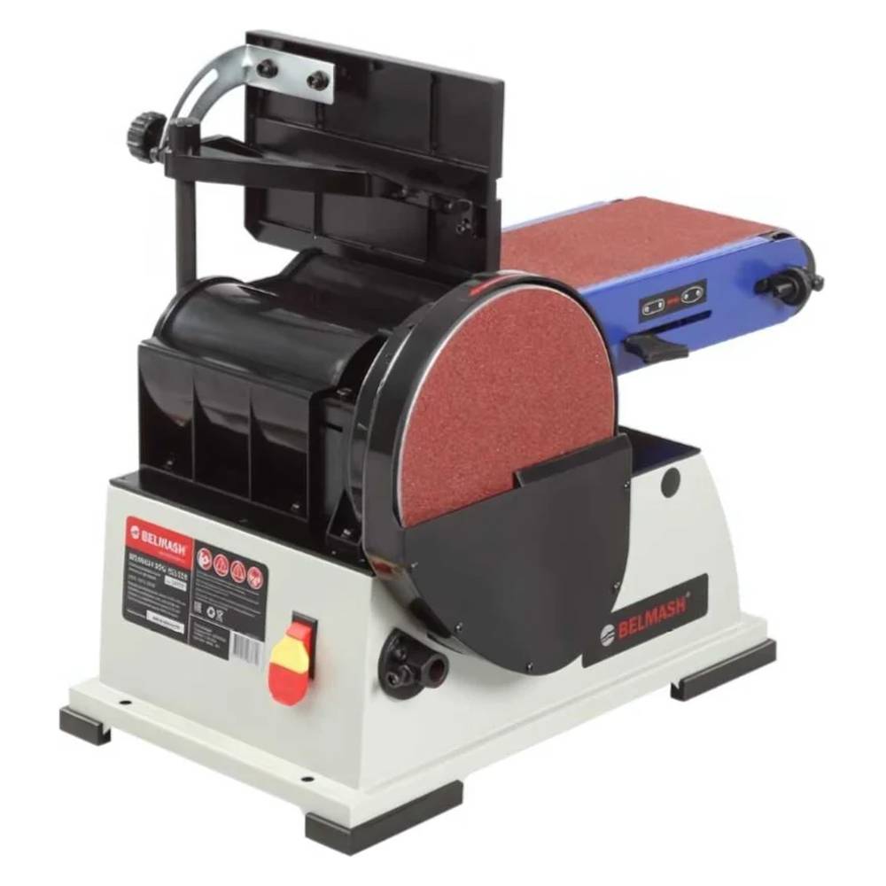 Шлифовальный ленточно-дисковый станок Belmash BDG 152/228 предназначен для грубой и чистовой обработки заготовок из дерева. Стальной сварной корпус крепится к основанию с помощью болтов для обеспечения неподвижности при работе.
