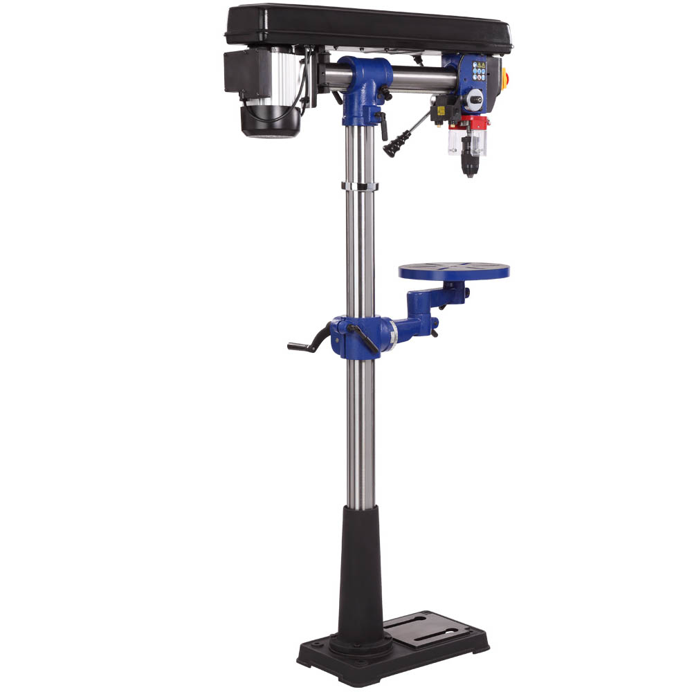 Станок предназначен для обработки различных материалов вращающимся режущим или шлифующим инструментом, с целью получения сквозных или глухих отверстий, растачивания, зенкерования. Модель RDP430-16F является радиальной, то есть, возможна регулировка положения сверлильной головы по высоте, относительно колонны, по горизонту и по окружности (вращается вокруг своей оси). Стол, опора и корпус сверлильной головки выполнены из чугуна, что придает станку серьезный вес 55 килограмм. Двигатель асинхронный, мощностью 600 Вт.
