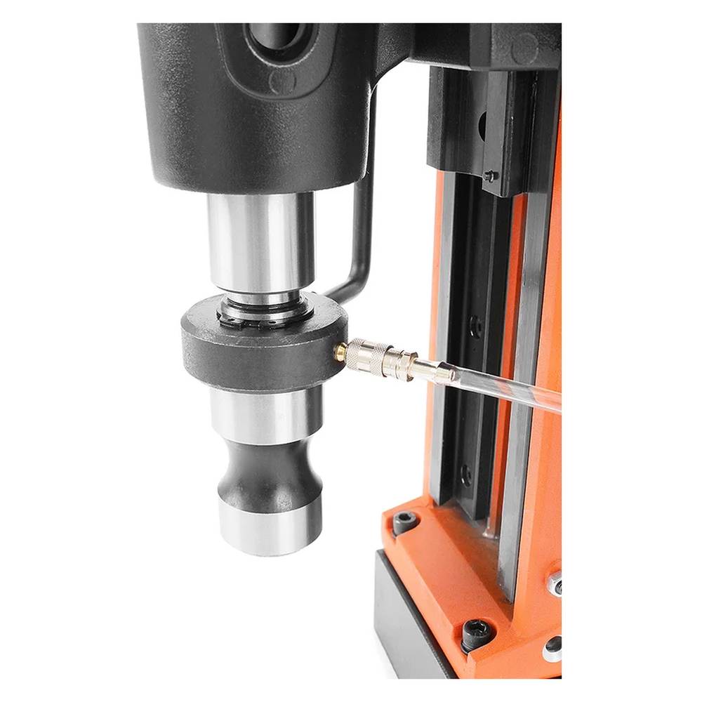Устройство работает кольцевыми и спиральными сверлами. Модель оснащена бочком для СОЖ, что позволяет качественно выполнять работу и продлить срок службы оснастки. В комплект входит переходник с КМ3 - Weldon 19/One-touch. Тип допустимых хвостовиков - КМ-3, One-touch и Weldon-19.