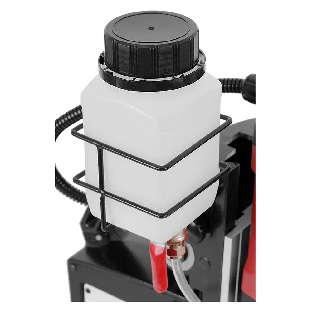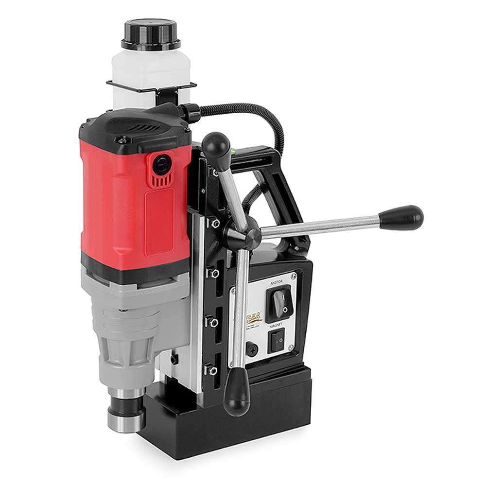 Мощный магнит, сила сцепления которого составляет 14000 Н, обеспечивает надежное крепление станка к металлическим поверхностям.
