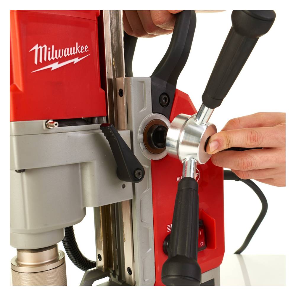 Станок сверлильный Milwaukee MDE 41 на магнитной станине обладает двигателем мощностью 1200Вт и и оптимальной скорость сверления. Имеет 2 скорости редуктора: 475 об/мин для сверления кольцевыми фрезами и 730 об/мин для сверления сверлами с цилиндрическим хвостовиком. AUTOSTOP™ датчик смещения: определяет избыточное вращение и автоматически отключает питание для защиты оператора. Максимальный диаметр сверления кольцевой фрезой 41мм и максимальный диаметр хвостовика 13мм.