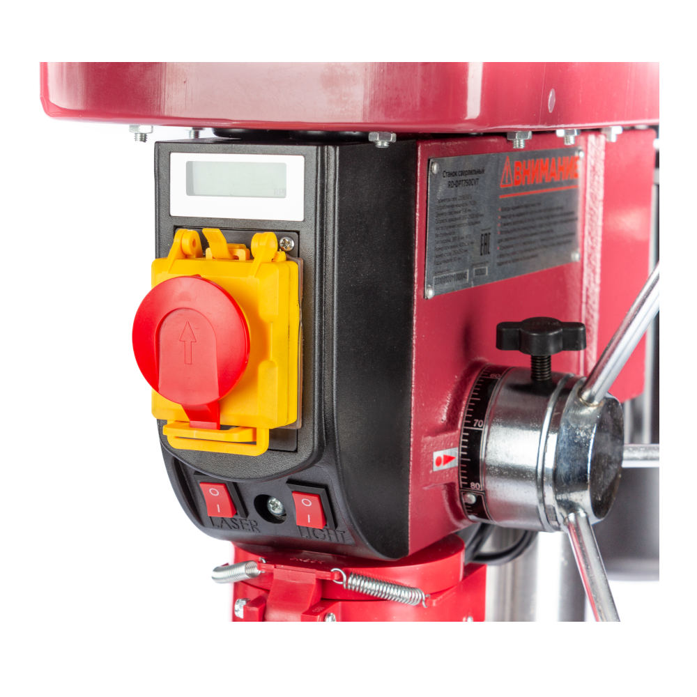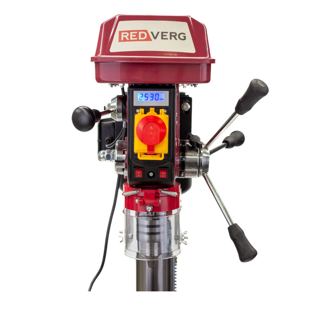 Станок сверлильный REDVERG RD-DPT750CVT с вариаторной настройкой оборотов относится к классу настольного оборудования. Преимуществом вариаторной настройки оборотов является возможность плавно регулировать скорость вращения сверла, что позволяет подобрать оптимальный режим сверления для каждого конкретного материала и сверла, предотвращая возможные повреждения заготовки или инструмента. Станок предназначен для обработки различных материалов вращающимся режущим или шлифующим инструментом, с целью получения сквозных или глухих отверстий, растачивания, зенкерования. Оснащен мощным современным двигателем 750Вт. Станок обладает такими функциями, как индикация скорости вращения шпинделя, подсветка рабочего стола, кнопка аварийной остановки, а также оборудован лазером - указателем. Патрон быстрозажимной с максимальным диаметром зажимаемого хвостовика инструмента 16 мм. Диаметр стойки (колонны) 72мм. Зубчатая рейка позволяет регулировать высоту стола с помощью рукоятки. В опоре имеется отверстия для крепления к верстаку, что дает дополнительную устойчивость и безопасность.