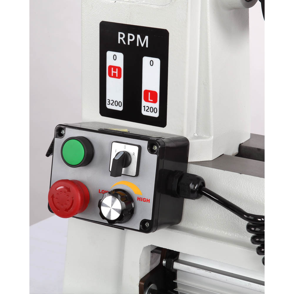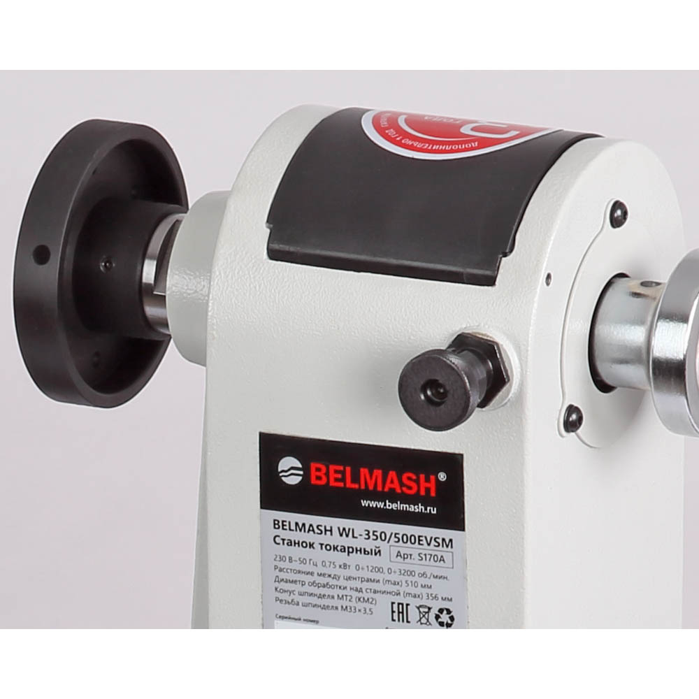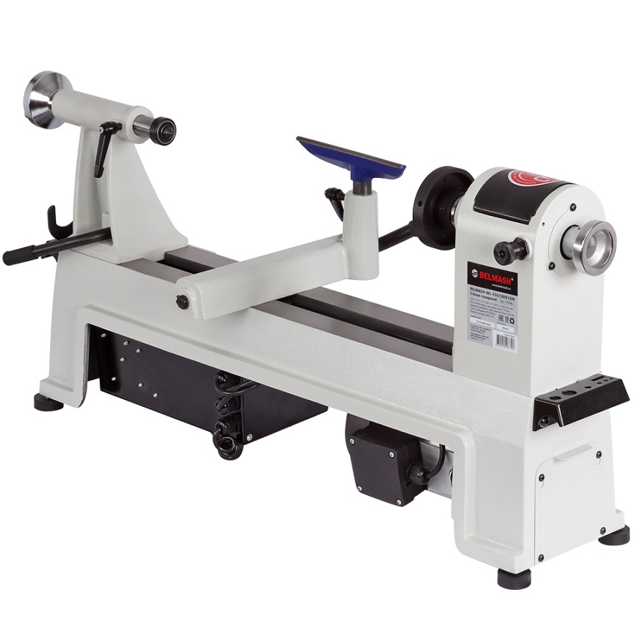 Станок BELMASH WL-350/500EVSM применяется для обработки древесины c целью придания ей необходимых форм и размеров методом точения. На станке выполняют черновое и чистовое точение цилиндрических, конических, фасонных поверхностей и т. п. Модель имеет асинхронный двигатель – 750 Вт. Диапазонов скоростей два: низкий - от 0 до 1200 об./мин., и высокий – от 0 до 3200 об./мин. Скорость регулируется плавно с помощью частотного преобразователя. Отличительная особенность – выносной пульт управления с магнитной фиксацией. Станина и подручник выполнены из высококачественного чугуна. Направляющие шлифуются с высокой точностью для обеспечения плавного хода подручника, передней и задней бабок. Диаметр обработки над станиной – 356 мм. Расстояние между центрами - 510 мм. На торцах станины имеются две консоли для инструментов и принадлежностей.