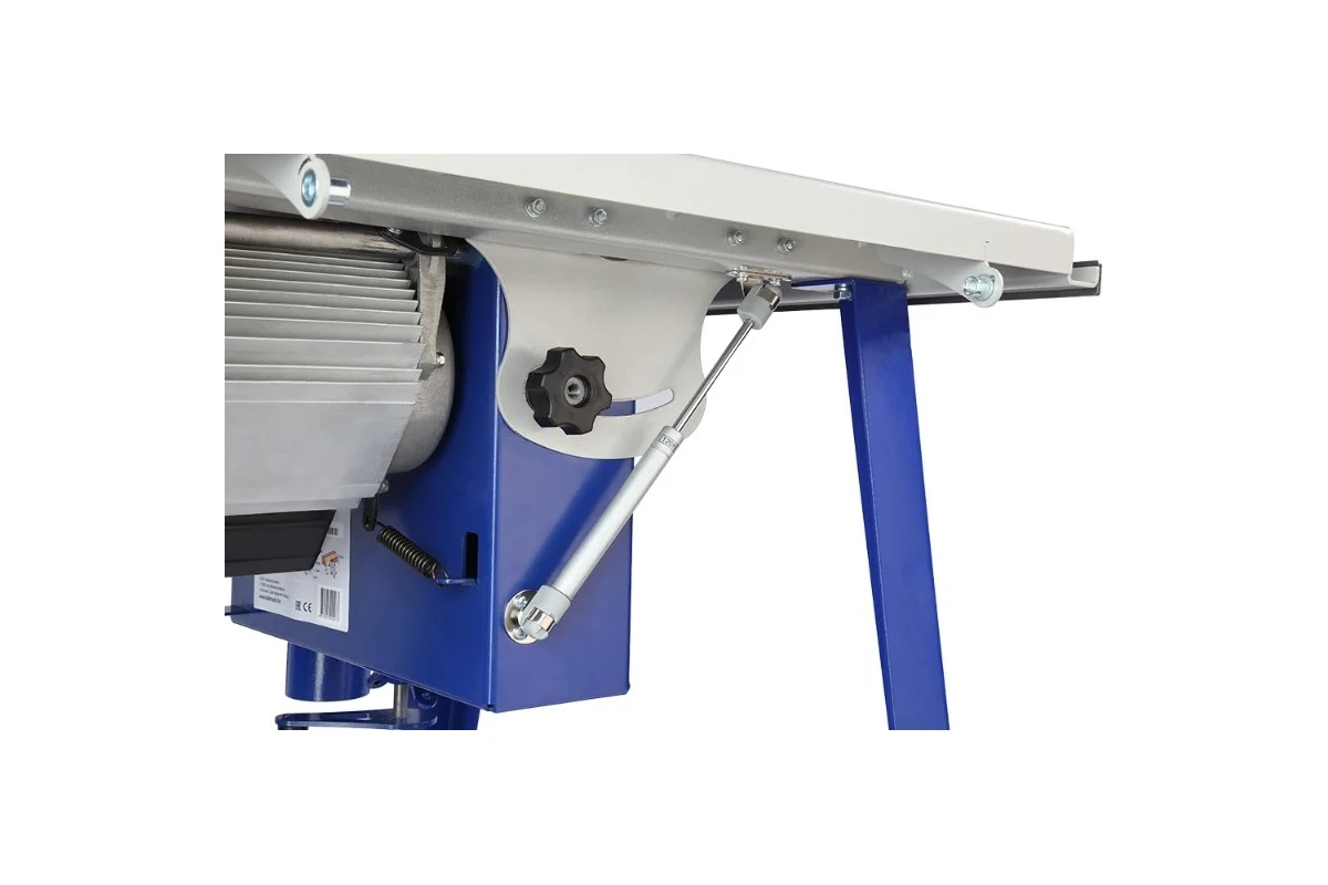 В комплект входит толкатель для ручной подачи заготовок, расклинивающий нож, защищающий от обратной отдачи и стенка для фрезерования. Стальной раскладной стол обеспечивает комфорт при работе с длинными заготовками и распиле листовых материалов.