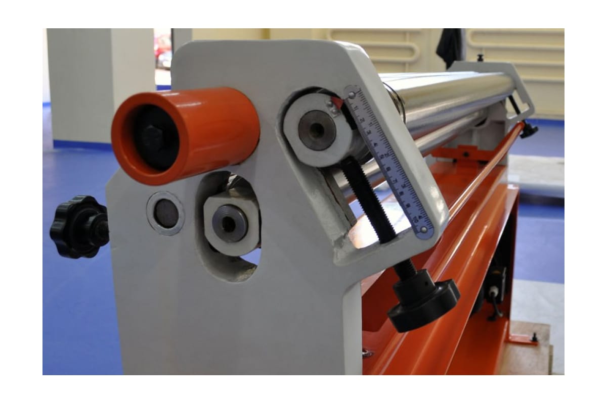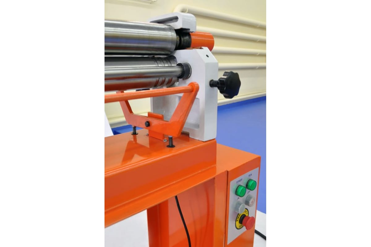 Верхний валок оснащен поворотно-откидным устройством, зажимом эксцентрикового типа и вращается в обе стороны.