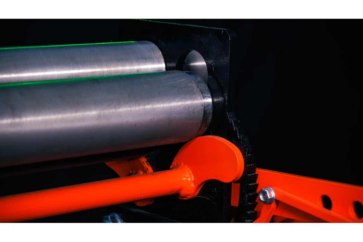 Зубчатый привод предотвращает проскальзывание металла между валами. Асимметрично расположенные валы обеспечивают ровный подгиб заготовок, исключая возникновение заломов и прямых участков (эффект домика).