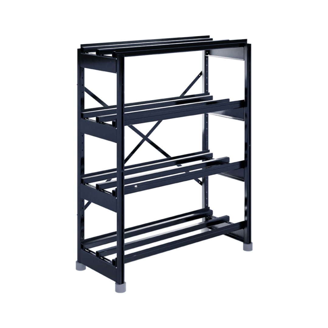 Сборно-разборная система позволяет подстраивать положение поперечных балок, исходя из размеров аккумулятора, а также перемещать ярусы в допустимых диапазонах.