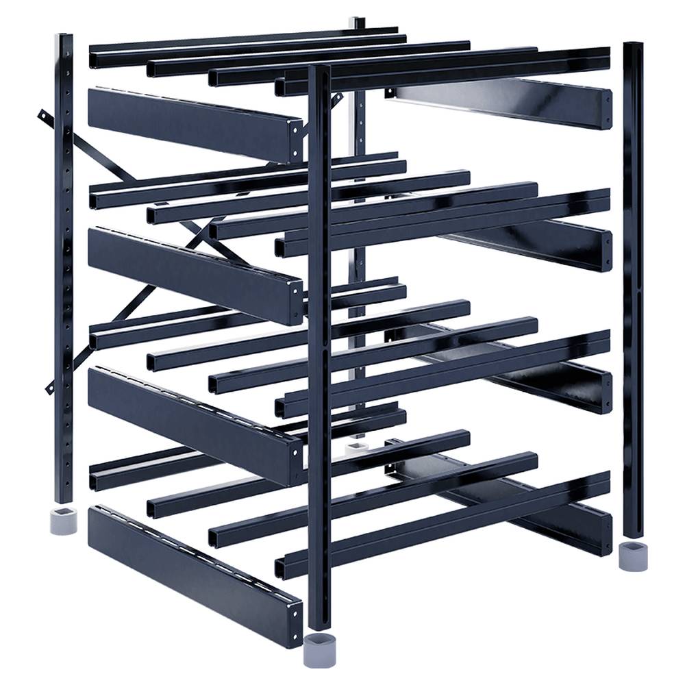 Сборно-разборная система позволяет подстраивать положение поперечных балок, исходя из размеров аккумулятора, а также перемещать ярусы в допустимых диапазонах.