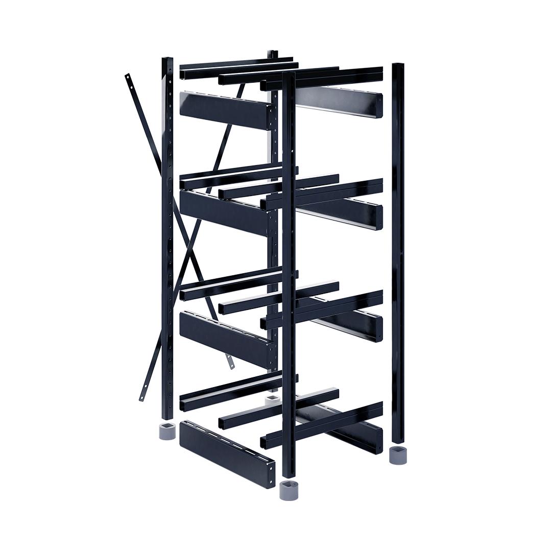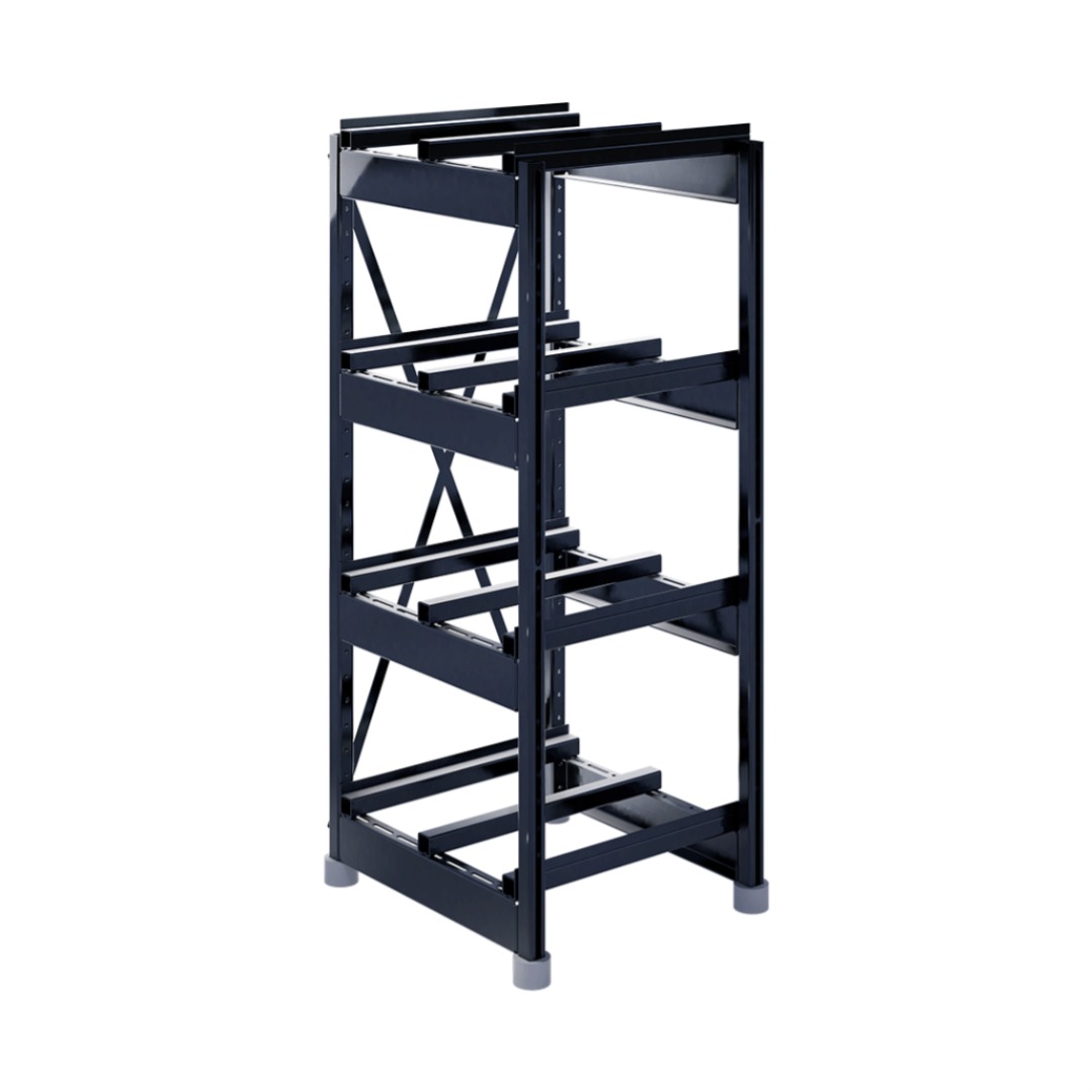 Сборно-разборная система позволяет подстраивать положение поперечных балок, исходя из размеров аккумулятора, а также перемещать ярусы в допустимых диапазонах.