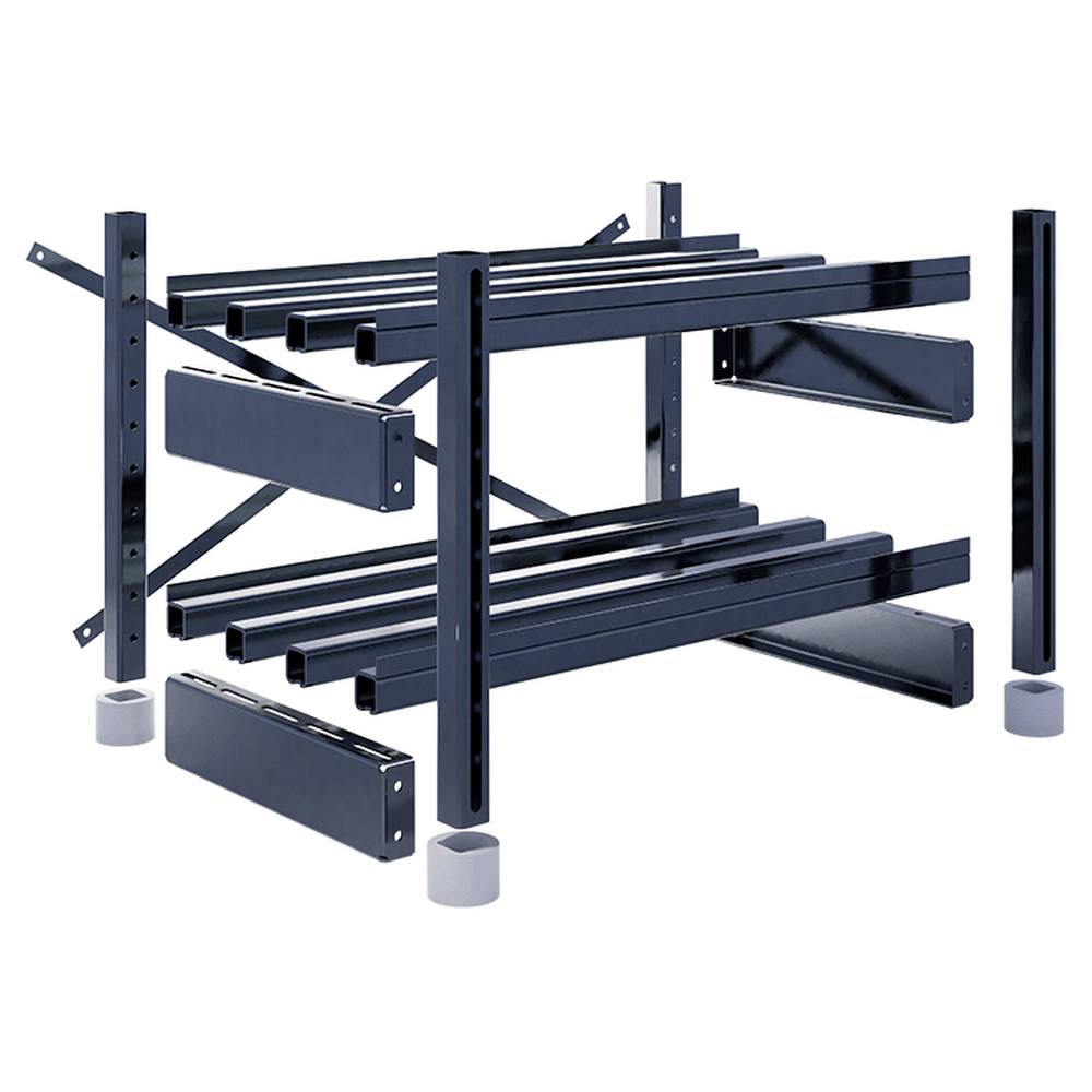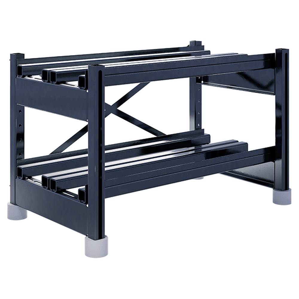 - Сборно-разборная конструкция. Позволяет подстраивать положение поперечных балок, исходя из размеров аккумулятора, а также перемещать ярусы в допустимых диапазонах.