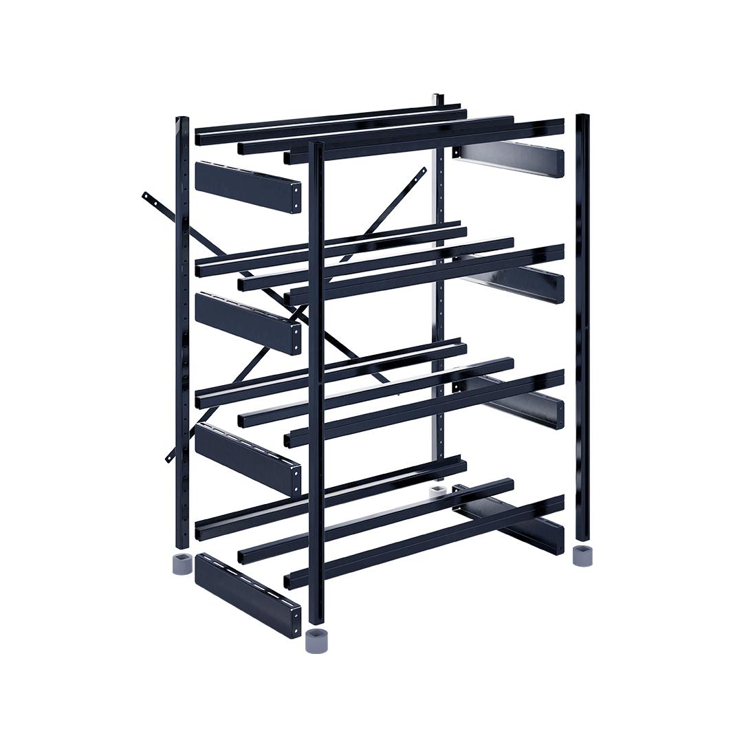 Сборно-разборная система позволяет подстраивать положение поперечных балок, исходя из размеров аккумулятора, а также перемещать ярусы в допустимых диапазонах.