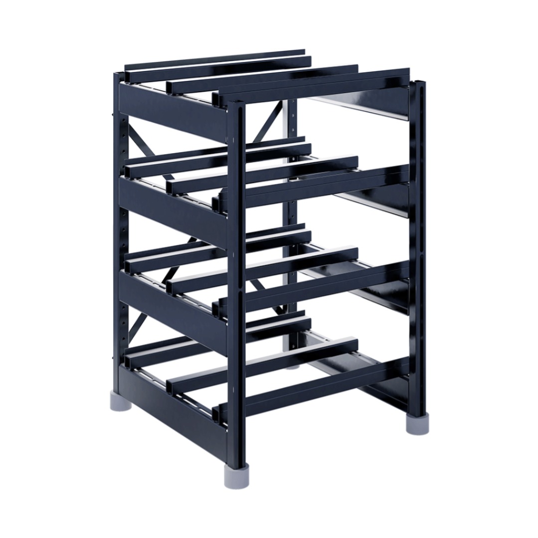 Сборно-разборная система позволяет подстраивать положение поперечных балок, исходя из размеров аккумулятора, а также перемещать ярусы в допустимых диапазонах.