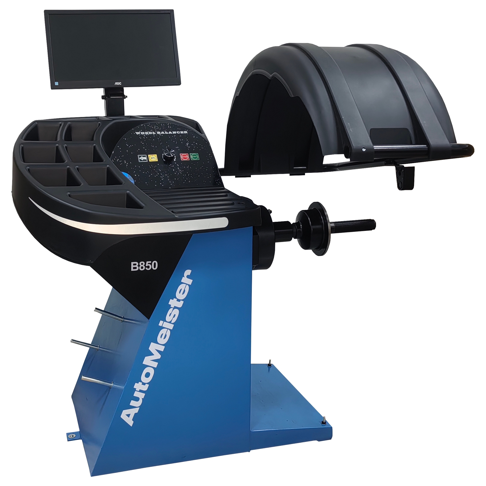 Станок балансировочный AutoMeister B850 - предназначен для использования на предприятиях по ремонту и обслуживанию автомобилей, шиноремонтных предприятиях, а также специализированных торговых предприятиях по продаже шин и колес для балансировки автомобильных колёс с дисками диаметром от 10” до 30”, шириной до 20”. Оснащен модулем «магнитной левитации» вместо стандартного ременного привода, что уменьшает вибрации и повышает точность измерений и надежность работы. Диаметр балансировочного вала составляет 40 мм, поэтому он может работать со всеми стандартными аксессуарами. Оснащен лазерным лучом для указания места приклеивания груза.