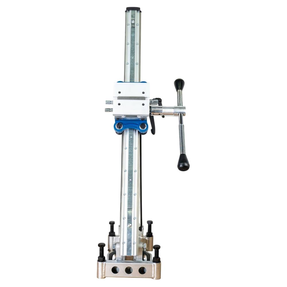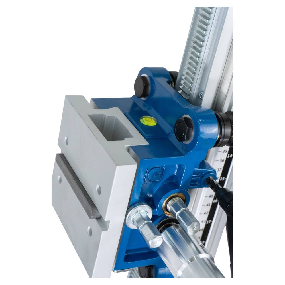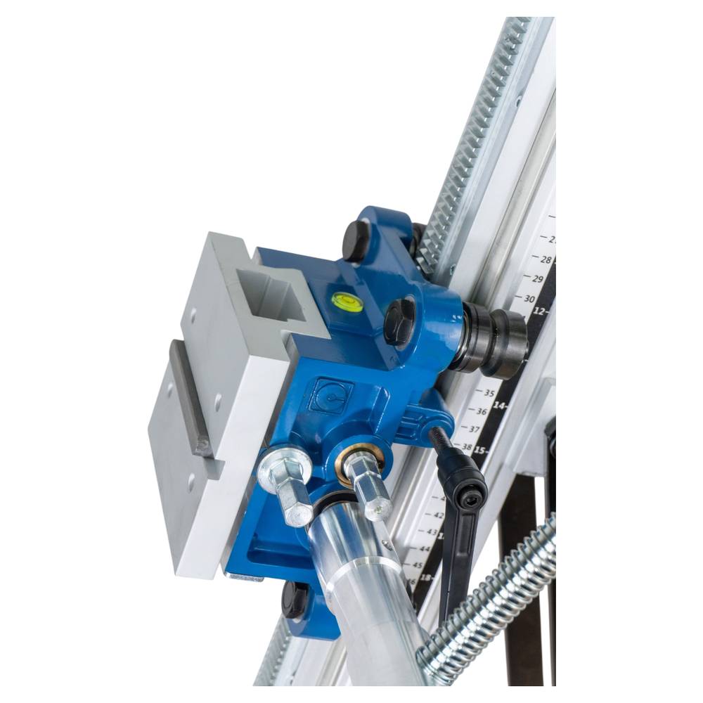 KEOS KS-250J подходит для бурения отверстий диаметром до 250 мм и совместим с моторами мощностью до 3 кВт. При необходимости, вы можете использовать ручные моторы алмазного сверления со стандартными посадками 60 мм через специальную проушину (поставляется отдельно). KEOS KS-250J — это идеальное решение для профессионалов, которым нужна надёжная, функциональная и удобная в эксплуатации установка для алмазного бурения под различными углами.