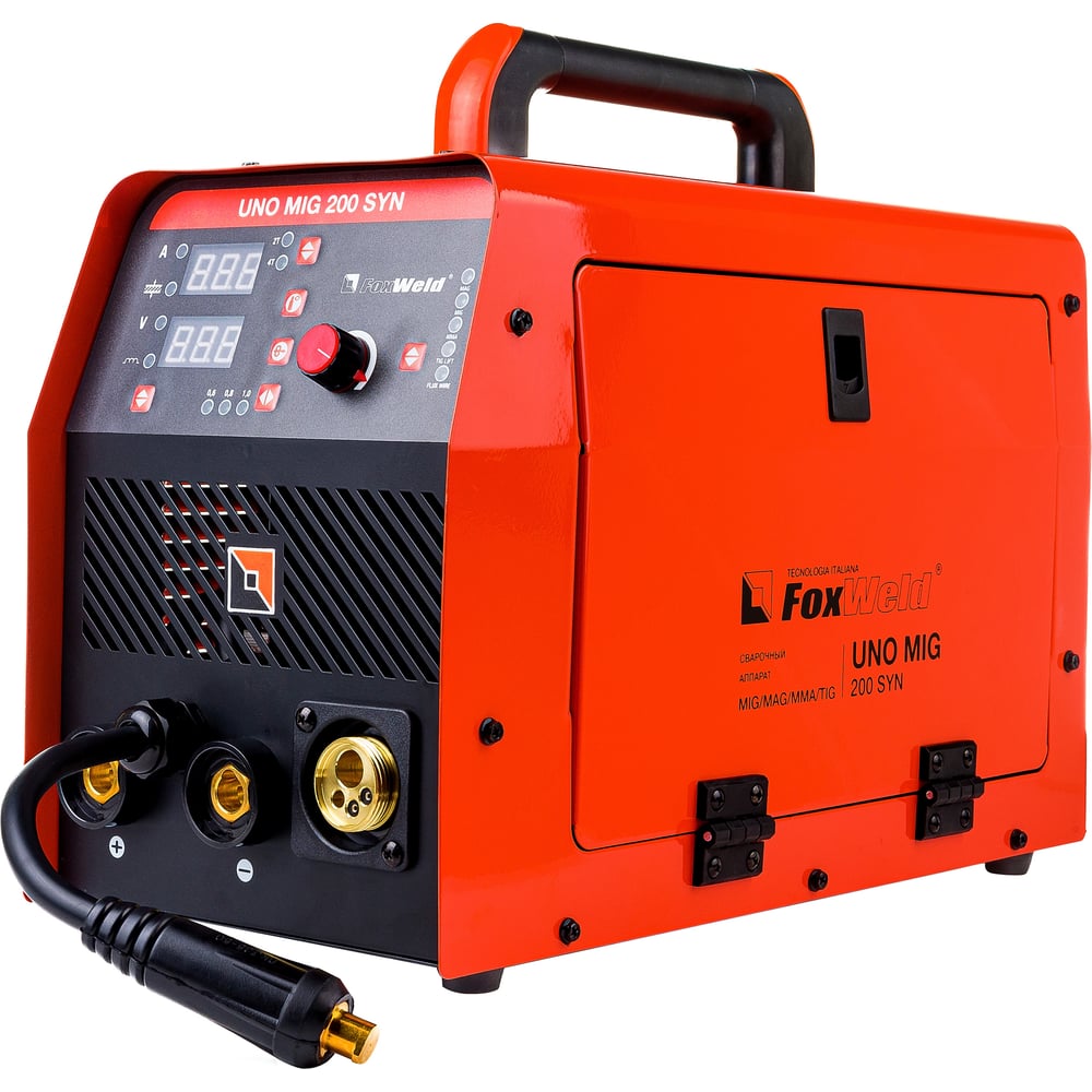 Сварочный полуавтомат Foxweld UNO MIG 200 SYN 7172 прост и удобен в обращении. Подходит для сварки порошковой проволокой в режиме MIG-MAG, а так же поддерживает функцию ручной дуговой сварки MMA штучным электродом и TIG в среде защитного газа. Данная модель оборудована понятной панелью управления. Это обеспечивает быструю и простую настройку рабочих параметров. Достаточно выбрать тип сварки, толщину проволоки и металла. Многочисленные отверстия на корпусе создают эффективное охлаждение и предотвращают перегрев аппарата во время работы.