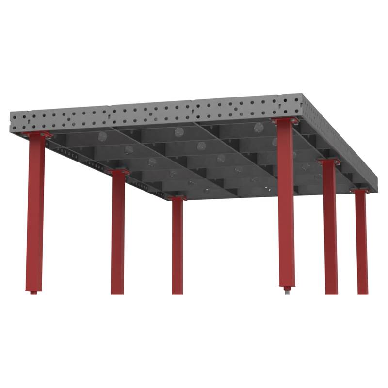 Сварочно-сборочный стол от Keepler-Stan предназначен для позиционирования и фиксации деталей и узлов металлических конструкций, а также для позиционирования роботизированной сварки. Усиленная ребрами жесткости столешница имеет отверстия диаметром 16мм и координатную сетку с шагом 50 мм для использования ее в качестве шаблона а так же нанесена линейка по длинной стороне стола для удобства позиционирования деталей. Толщина и высота ребер жесткости соответствует толщине столешницы и заявленной высоте боковой стенки. Допустимое отклонение по плоскости столешницы 1мм на 1 пог.м. стола. Высота стола 900мм, с возможностью регулировки 50 мм.