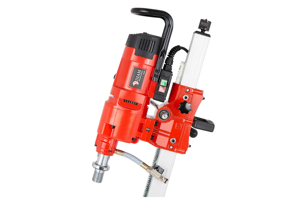 Сверлильные машины состоят из алюминиевой станины (стойки) с основанием и электродвигателя, закрепленного на рабочей каретке, которая перемещается по стойке с помощью стальной зубчатой рейки. Имеют узел подвода воды с краном, электрическую защиту PRCD от удара электротоком.