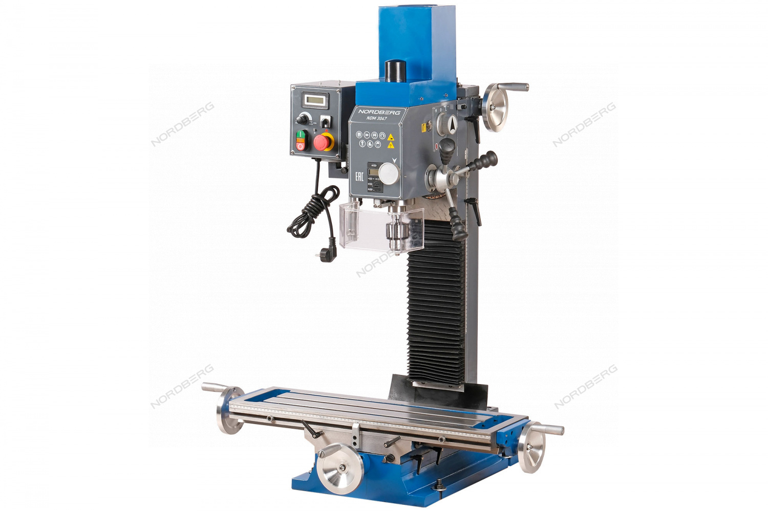 Сверлильно-фрезерный станок NORDBERG NDM3047 – универсальный настольный станок, предназначенный для фрезерования, сверления, нарезания резьбы и других видов механической обработки металлов, полимерных материалов и т. д.