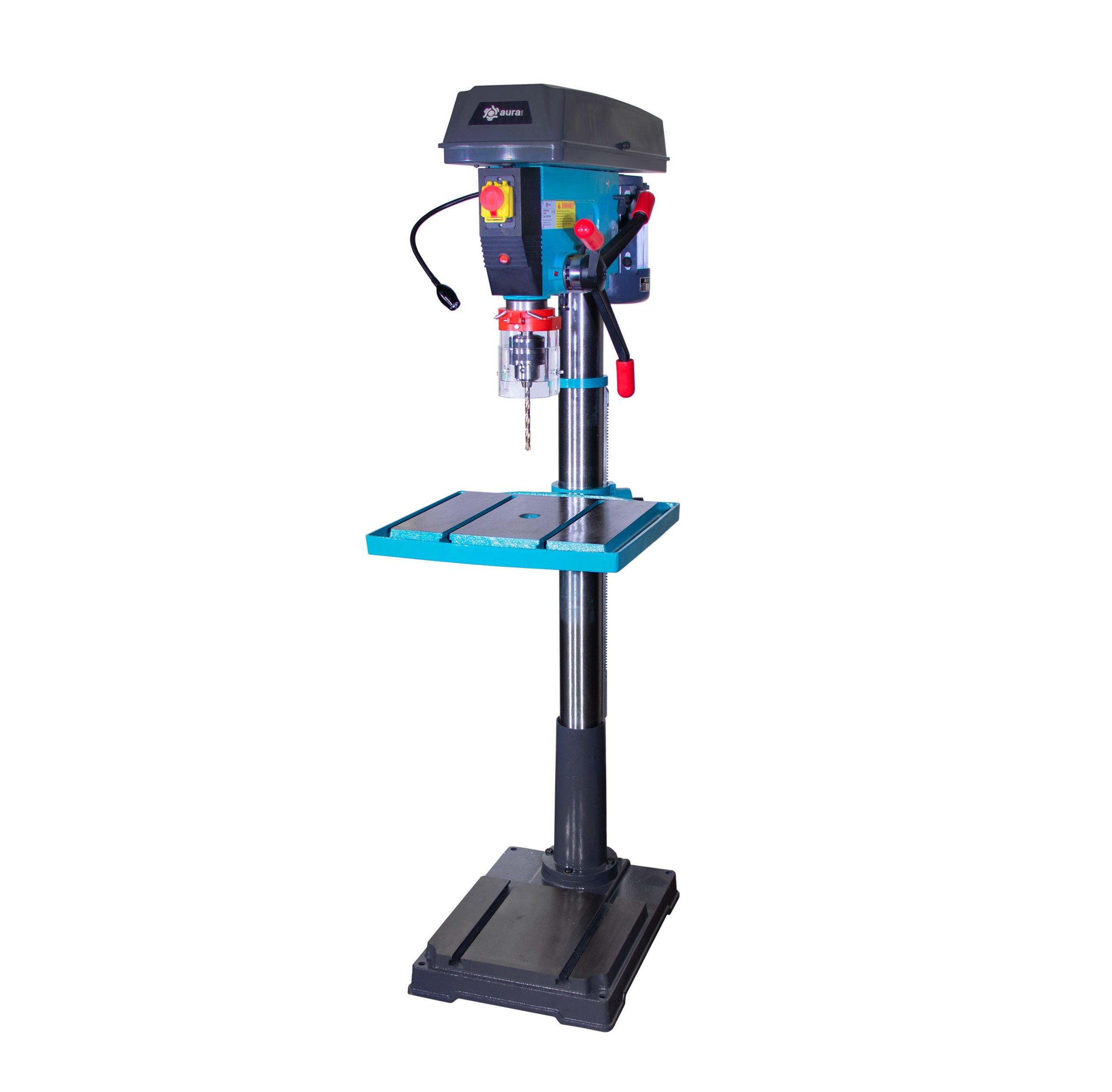 В условиях мелко-среднесерийного и крупного производства сверлильный станок AURA CM-2020/380 находит широкое применение за счет своей многофункциональности, и высокой производительности. Станок может быть использован практически в любых условиях — он работает от трёхфазной сети, имеет высокую стойку _ 92 мм, устойчивое основание и отличается невысокой потребляемой мощностью. Возможности станка расширены благодаря функциями поворота и наклона стола. Для удобства при эксплуатации станок оснащен лазерным указателем и подсветкой рабочей зоны. В целях дополнительной защиты оператора, станок оборудован защитным экраном, который повышает безопасность работы на станке и при этом не закрывает обзор. Станок комплектуется машинными тисками.