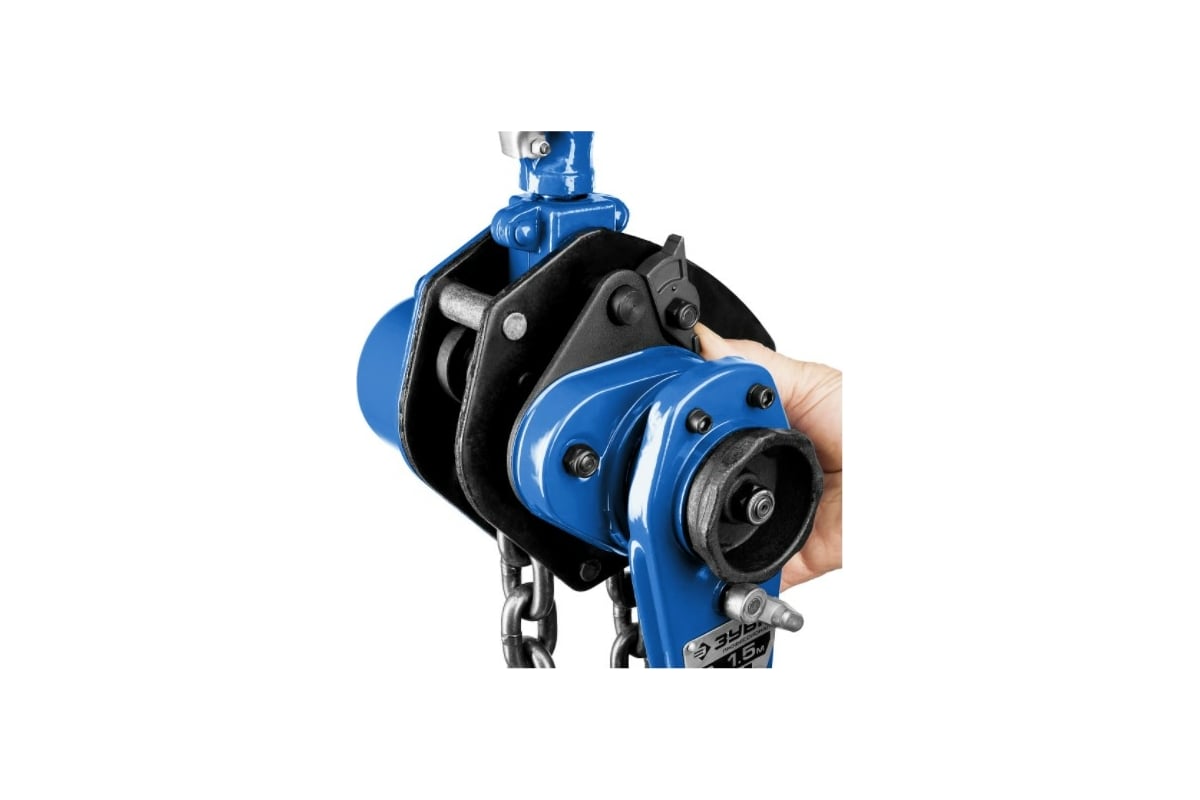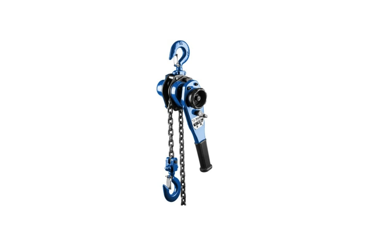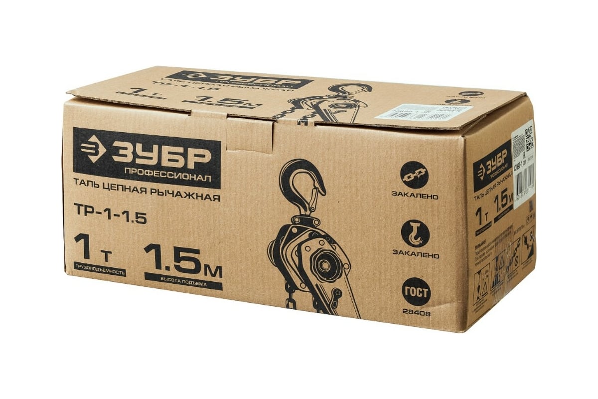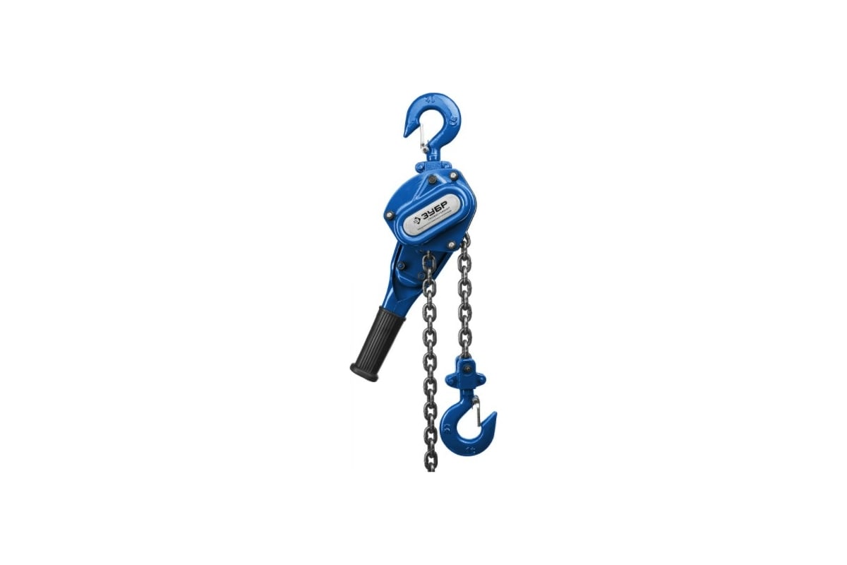 Цепная таль Зубр Профи, рычажная 1т/1.5м 43090-1_z01 подходит для вертикального перемещения грузов. Наличие крюков с дополнительной защитой исключает срыв даже при незначительном превышении допустимой массы.