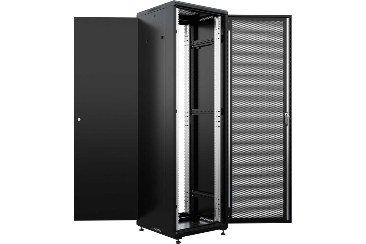 Напольный универсальный серверный шкаф предназначен для установки различного сетевого оборудования стандарта 19 дюймов (по ширине 485 мм), крепление которого соответствует требованиям ГОСТ 28601.2–90 (МЭК 60297). Пассивное и активное сетевое оборудование крепится на вертикальные 19" направляющие шкафа друг над другом.