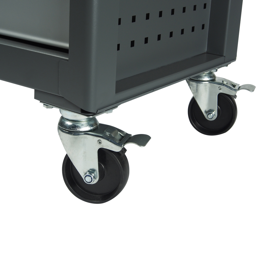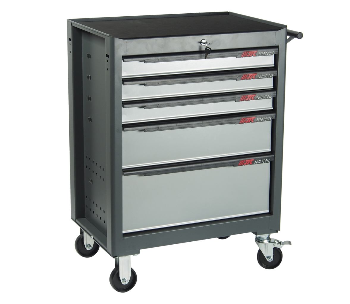 Перфорированные внутренние стенки боковых ящиков с квадратными отверстиями предоставляют возможность разместить дополнительные аксессуары для хранения инструментов. Применяется с серией подвесных приспособлений JTC-3218.