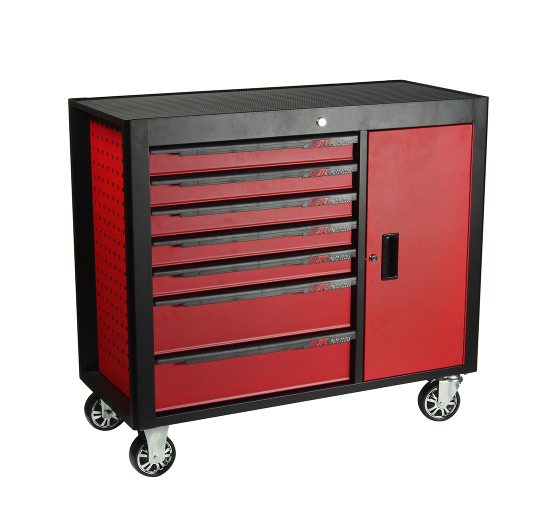 Перфорированные внутренние стенки боковых ящиков с квадратными отверстиями предоставляют возможность разместить дополнительные аксессуары для хранения инструментов. Применяется с серией подвесных приспособлений JTC-3218.