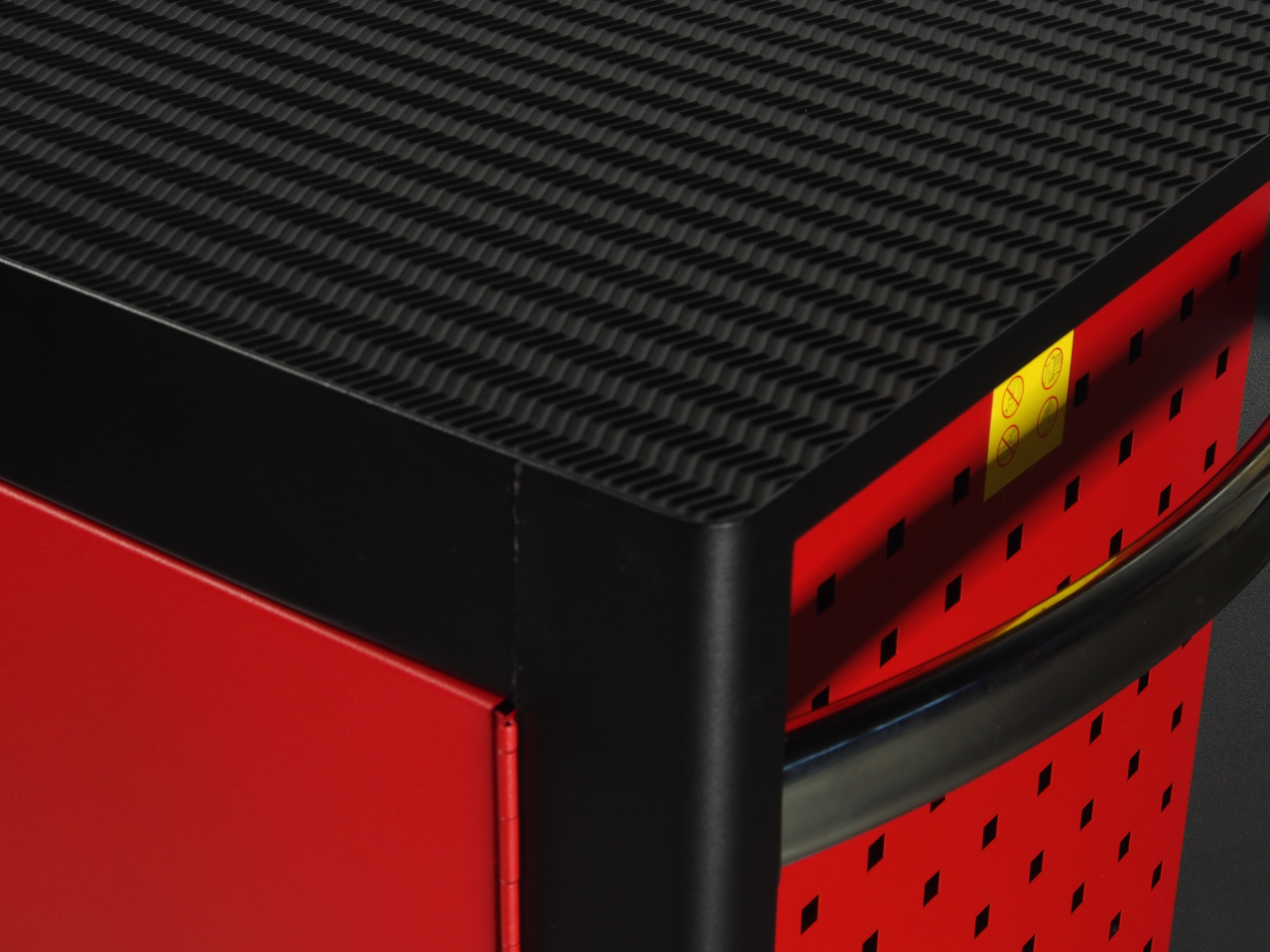 Выдвижные ящики оснащены нескользящими вкладками. В комплекте предусмотрен верхний коврик из EVA, предназначенный для удобного хранения различных мелких деталей.