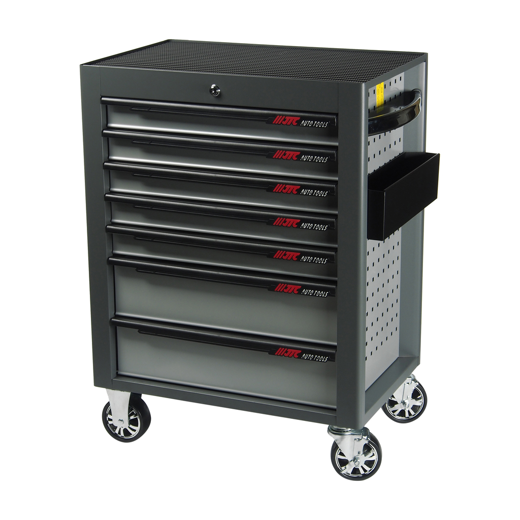 Перфорированные внутренние стенки боковых ящиков с квадратными отверстиями предоставляют возможность разместить дополнительные аксессуары для хранения инструментов. Применяется с серией подвесных приспособлений JTC-3218.
