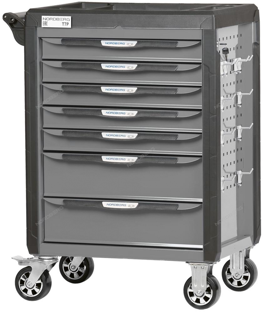 Тележка инструментальная, 7 выдвижных ящиков, с системой защиты от опрокидывания, серая NORDBERG T7P