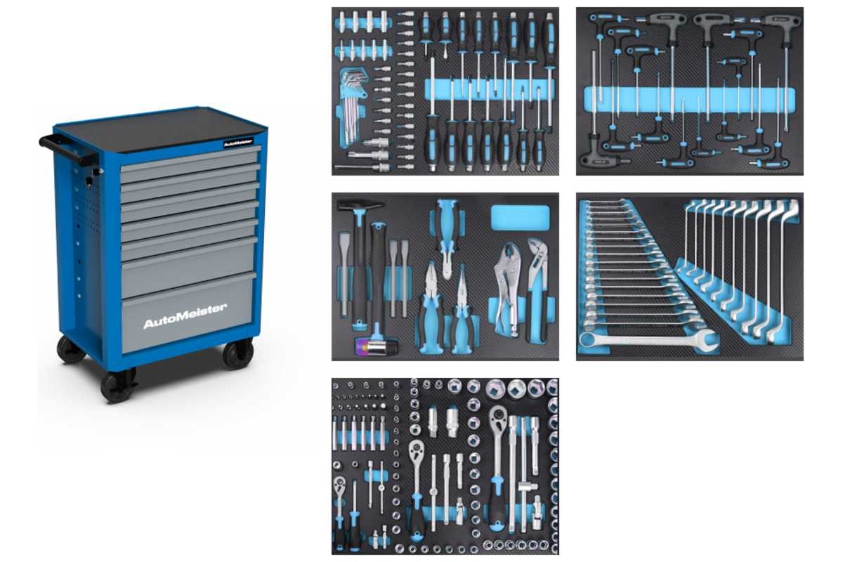 Инструментальная тележка AutoMeister TM1B7N-218 + набор инструмента 218шт. T15218E - колеса диаметром 125 мм для легкого перемещения по неровностям.