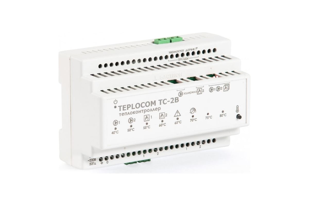 Теплоконтроллер TEPLOCOM Каскад ТС-2В предназначен для управления системой водяного отопления, состоящей из 2 котлов и 2 циркуляционных насосов по сигналам от датчика температуры теплоносителя или комнатного термостата. Теплоконтроллер TEPLOCOM Каскад TC-2B обеспечивает корректную совместную работу двух независимых котлов отопления.