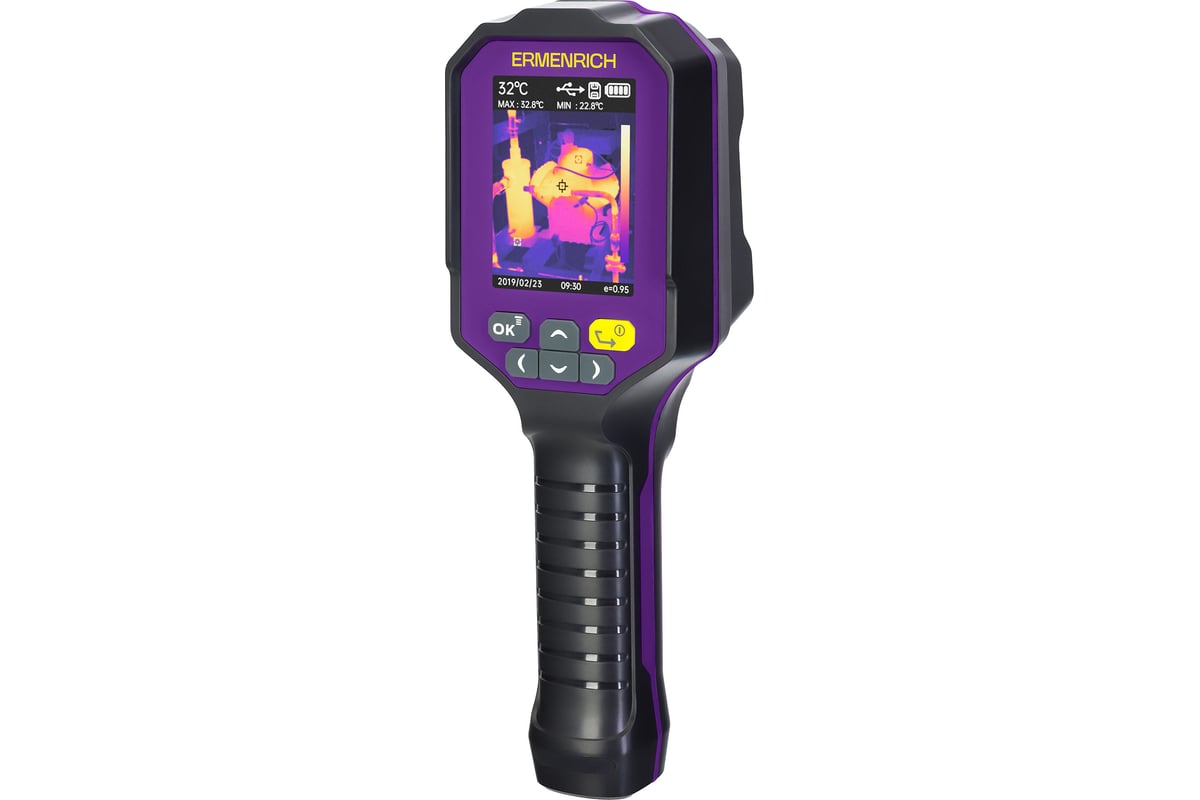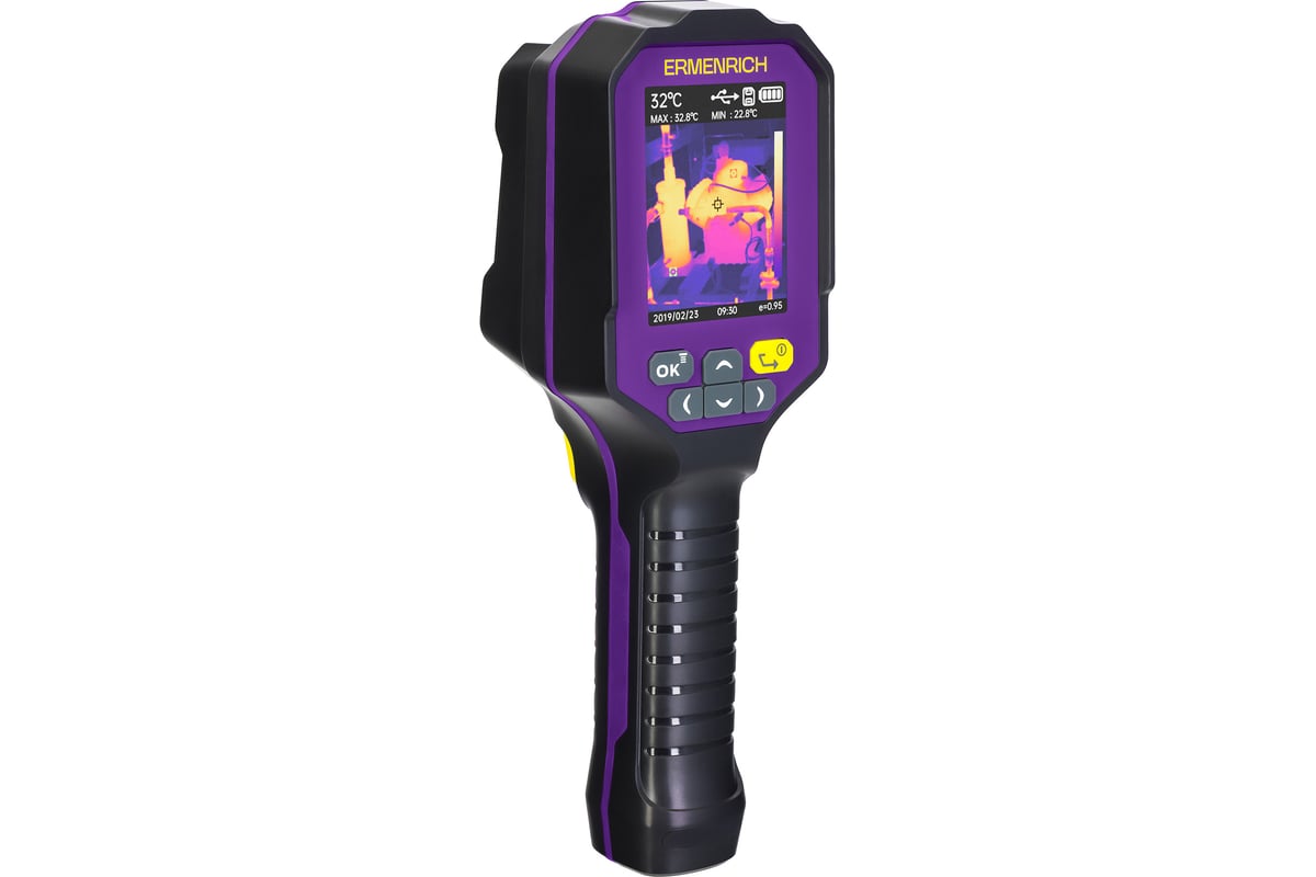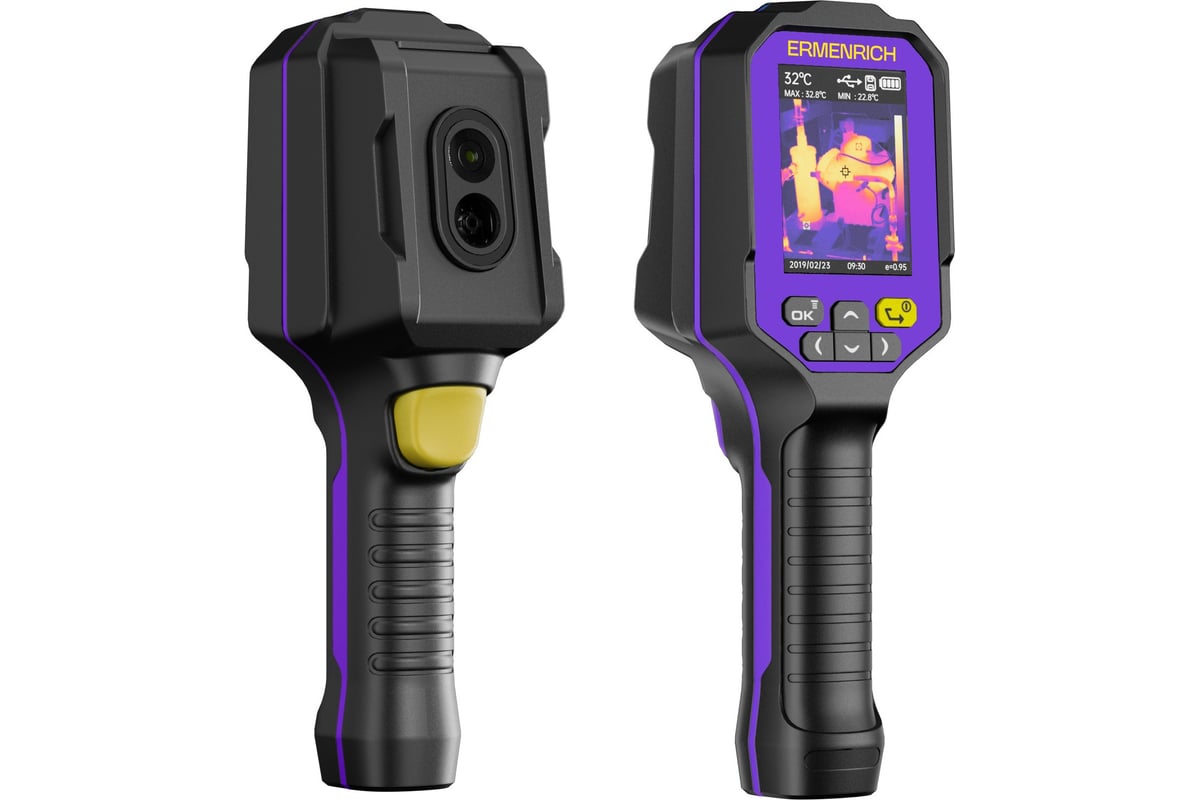 Строительный тепловизор Ermenrich Seek TV60 — это компактный и удобный инструмент для диагностики тепловых аномалий в строительстве, ремонте и электромонтаже. Он помогает выявить утечки тепла, дефекты кладки, перегревы электросетей, источники сквозняков и проконтролировать правильность монтажа отопительных систем. Прибор измеряет температуру в диапазоне от –10 до +400 °C с точностью ±2° (до 100 °C), поддерживает отображение данных в градусах Цельсия, Фаренгейта и кельвинах.