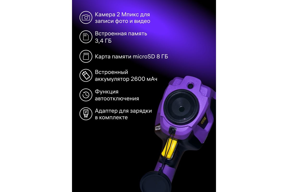 Тепловизор оснащён матрицей 120x90 пикселей с высокой чувствительностью 40 мК — даже малейшая разница температур фиксируется чётко и детально. На 3,5-дюймовом дисплее 640x480 пикселей изображение выглядит плавно и контрастно благодаря частоте 25 Гц. Просматривать и анализировать результаты можно прямо на месте — без необходимости выгружать данные на компьютер.