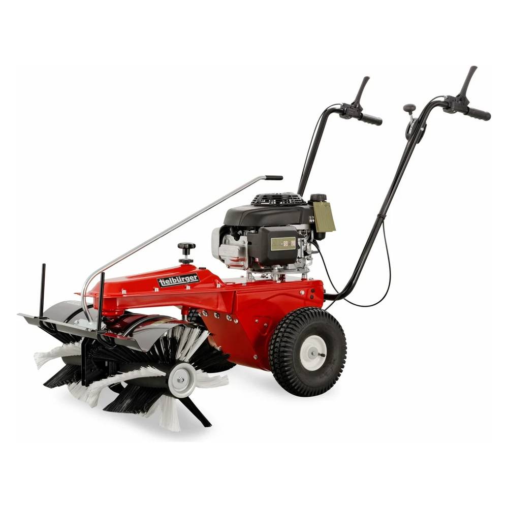 Подметально-уборочная машина TIELBUERGER TK17 используется для очистки придомовых дорожек, подъездной территории от песка, сухих листьев, небольшого бытового мусора, рыхлого снега. За час работы машина способна расчистить площадь в 2100 м2. В стандартной комплектации идет щетка (диаметр 30 см, ширина захвата за один проход 70 см). Так же машину можно дооснастить контейнером для мусора, ножом-отвалом, цепями на колеса для лучшего сцепления с поверхностью и защитным фартуком, предупреждающим вылет камней и крупного мусора из под щетки.