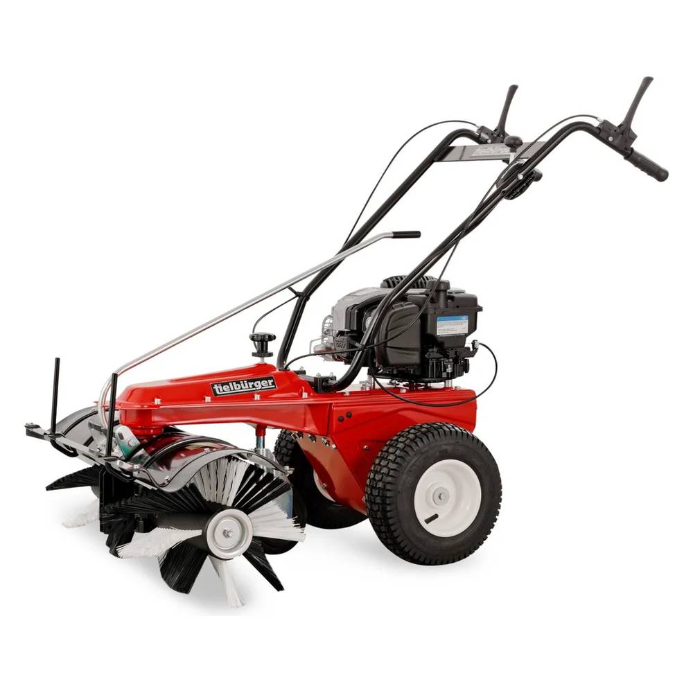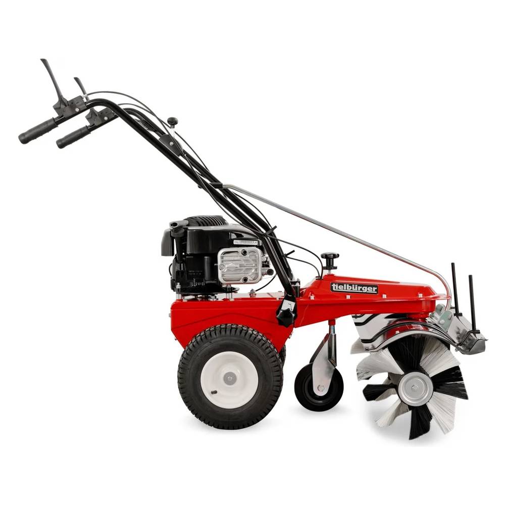 Подметально-уборочная машина TIELBUERGER TK18 используется для очистки придомовых дорожек, подъездной территории от песка, сухих листьев, небольшого бытового мусора, рыхлого снега. За час работы машина способна расчистить площадь в 2800 м2. В стандартной комплектации идет щетка (диаметр 30 см, ширина захвата за один проход 80 см). Так же машину можно дооснастить контейнером для мусора, ножом-отвалом, цепями на колеса для лучшего сцепления с поверхностью и защитным фартуком, предупреждающим вылет камней и крупного мусора из под щетки.