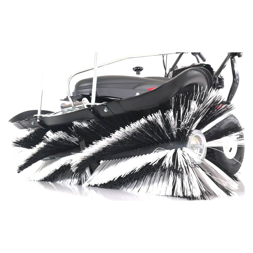 - Универсальная щетка - справляется практически с любым видом загрязнений. Жесткие белые щетины предназначены для въевшейся грязи, мха, снега. Мягкие черные – для уборки пыли и листвы. Щетка изготовлена из морозостойкого полипропилена, обеспечивающего ресурс не менее 1600 моточасов
