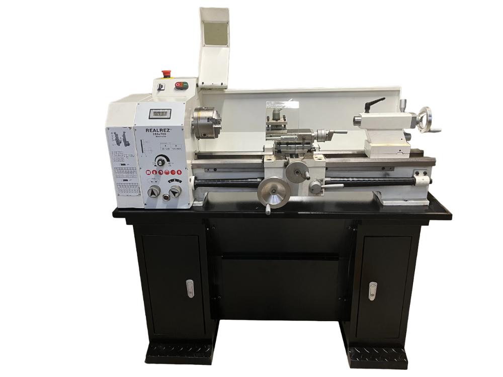 Токарно-винторезный станок REALREZ 280x700 — это незаменимый и надежный станок для небольших металлообрабатывающих предприятий. Станок поставляется в комплекте со столом, ножки которого выполнены в виде тумб, для удобного расположения инструмента. На станке можно нарезать как метрическую, так и дюймовую резьбу благодаря шпинделям с прочными металлокерамическими подшипниками.
